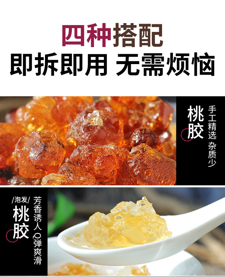 【桃胶养颜套餐】桃胶200克 雪燕50克 皂角米50克 老冰糖250克 养颜佳品 口感Q弹,汤水嫩滑黏稠