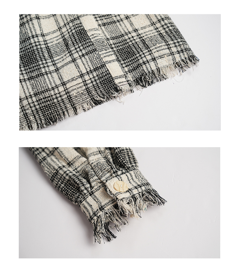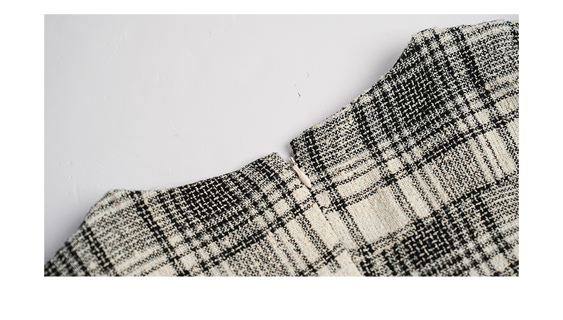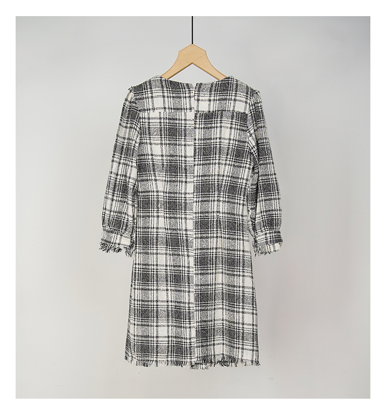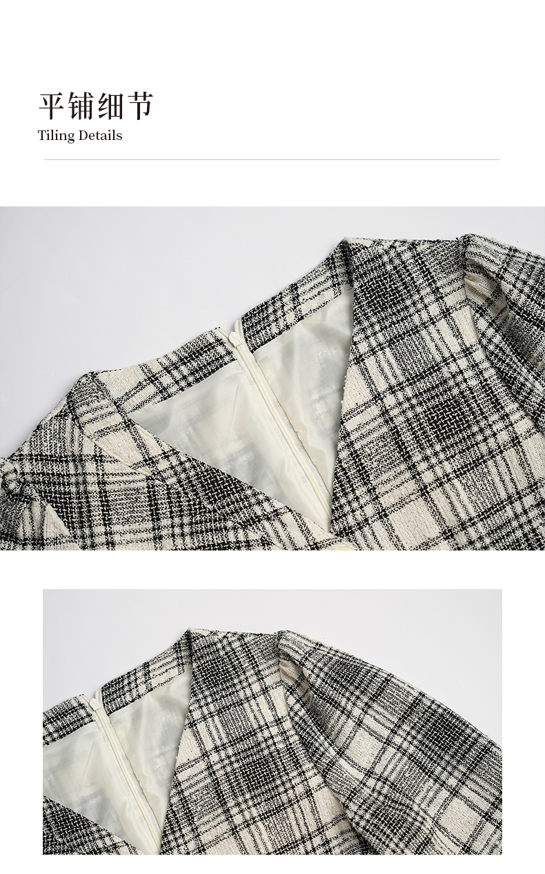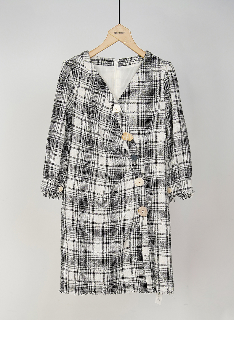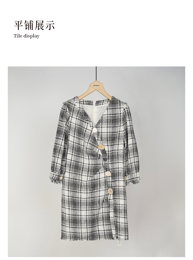 oldcolour秋冬款黑白格子连衣裙V领设计感气质中长裙GL32103842