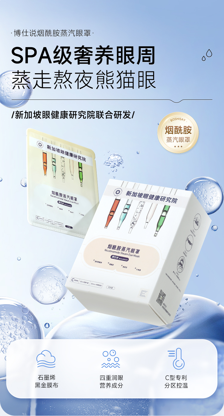博仕说-烟酰胺蒸汽眼罩1盒熬夜舒缓眼疲劳黑眼圈分区控温