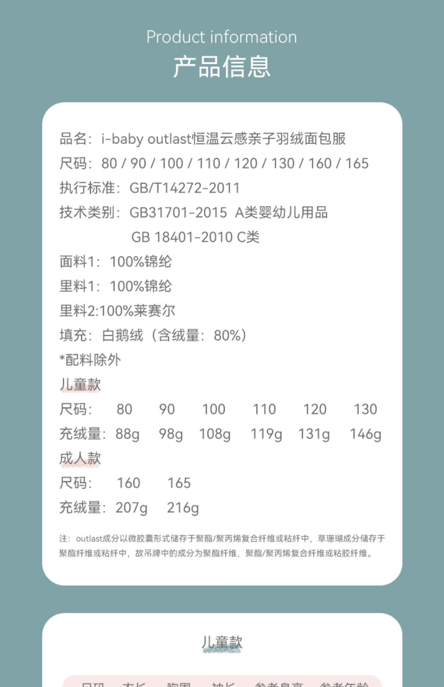 【断码清仓】i-baby outlast恒温面包服羽绒服 80码