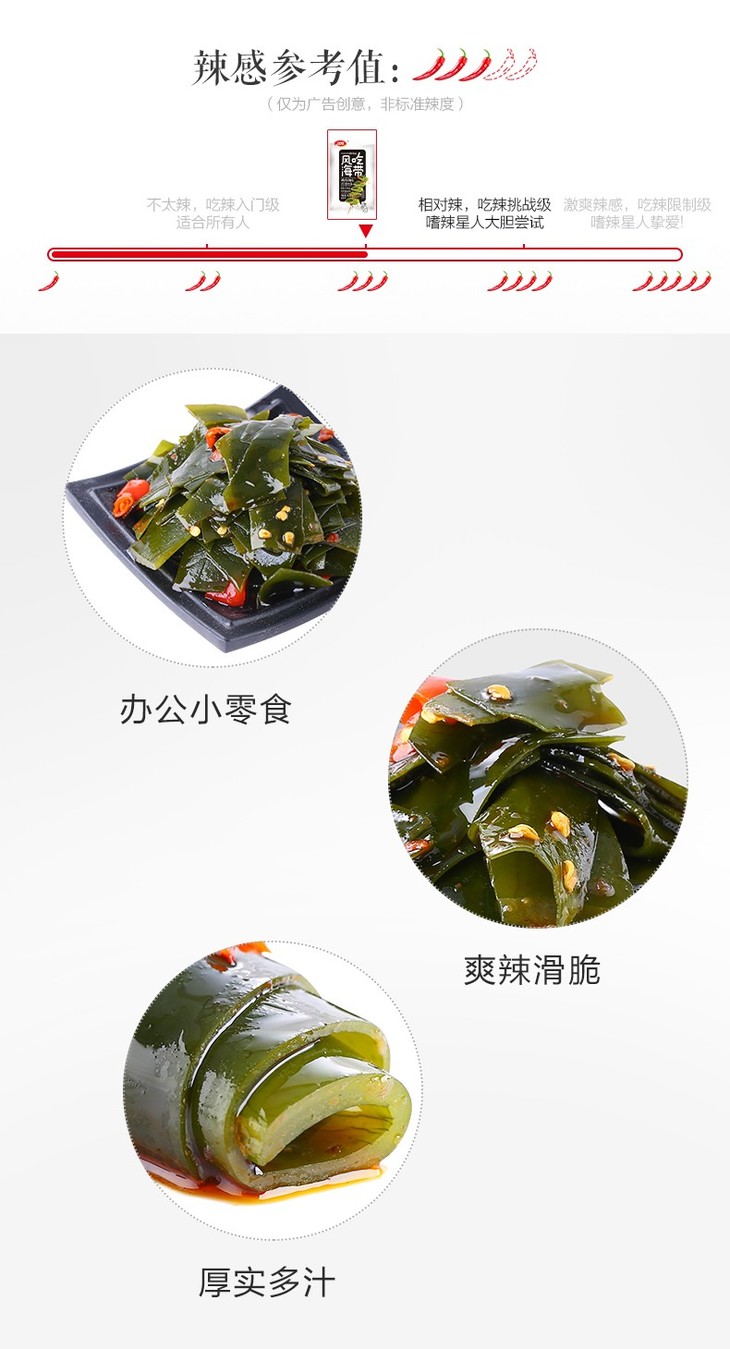 【热辣海洋风】卫龙 海带 50g*3袋 开袋即食 小吃包装 零食下饭菜 辣条 辣片工艺 风吃海带丝结
