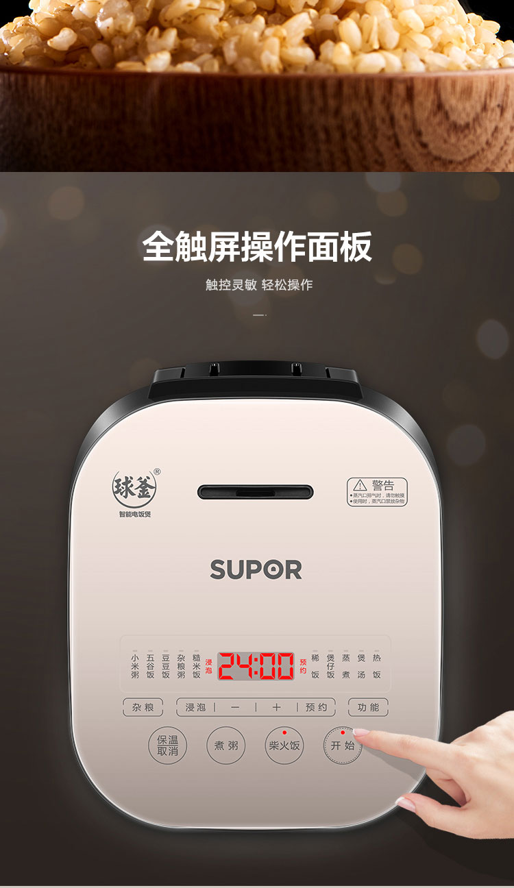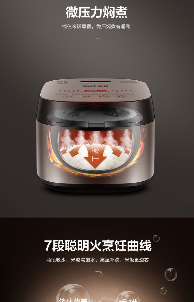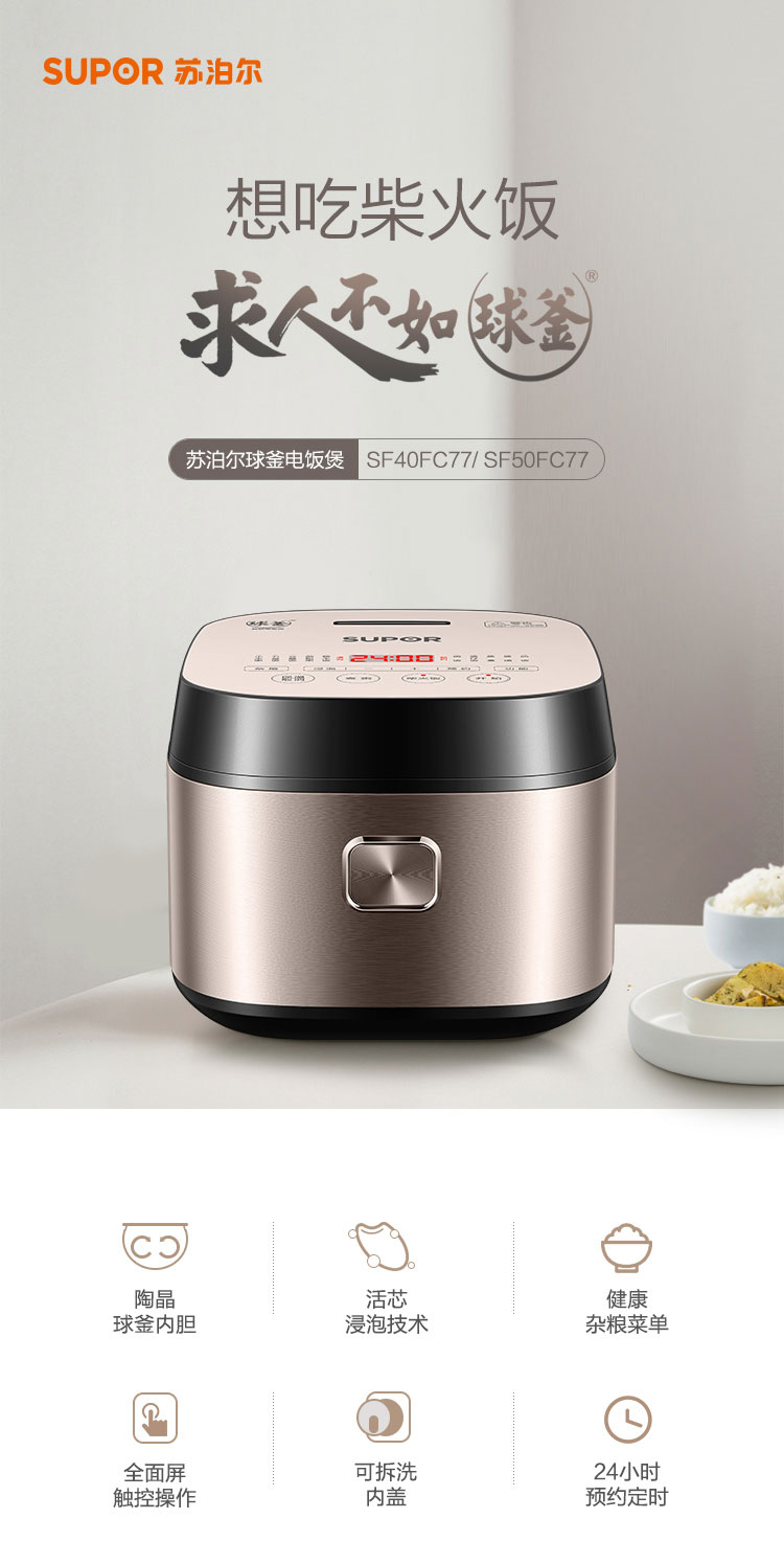 苏泊尔 电饭煲 SF40FC77 家用4L智能球釜大容量多功能电饭锅煮饭4升 可拆洗内盖 陶晶球釜内胆