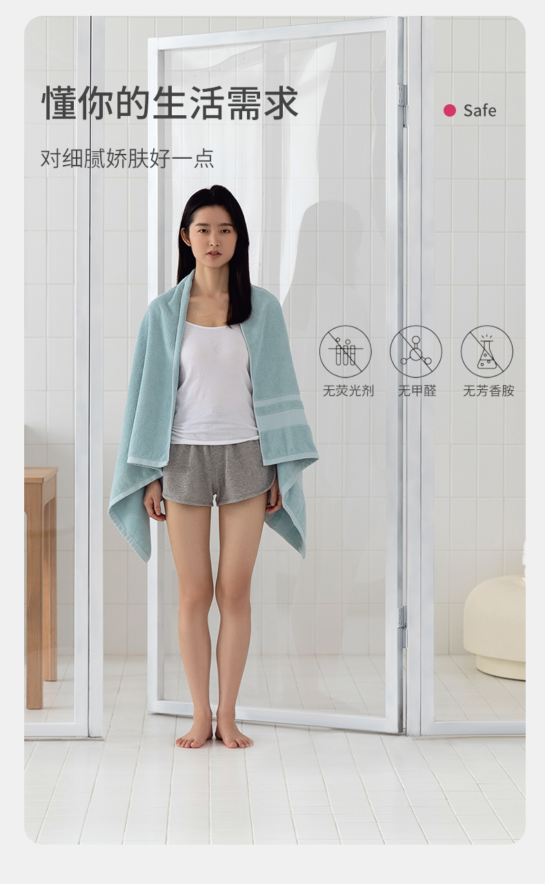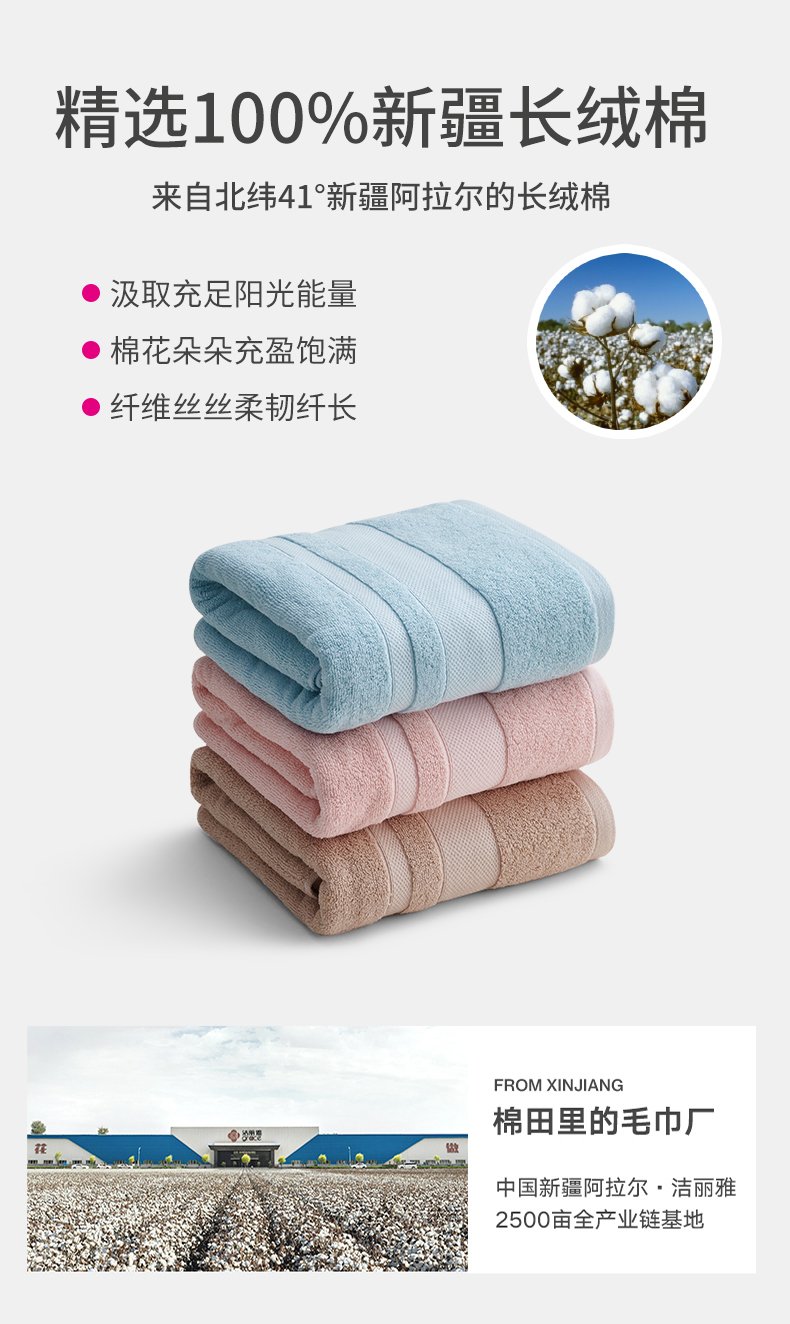 洁丽雅全棉大浴巾A类 鲁道夫技术 加厚浴巾#东方甄选