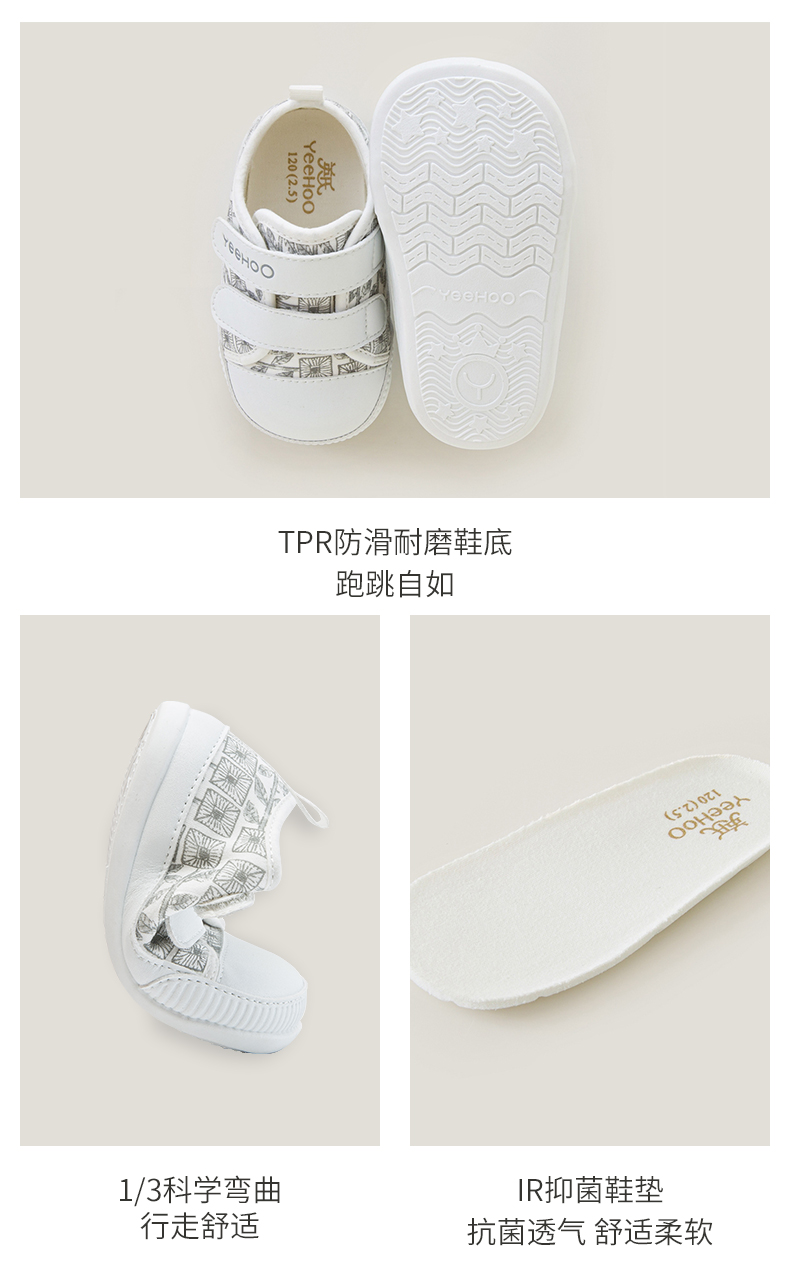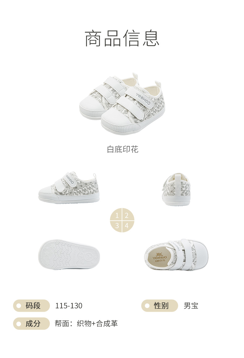 英氏童鞋儿童男宝宝学步鞋23春夏休闲软底运动小白鞋YFXHJ1P083A