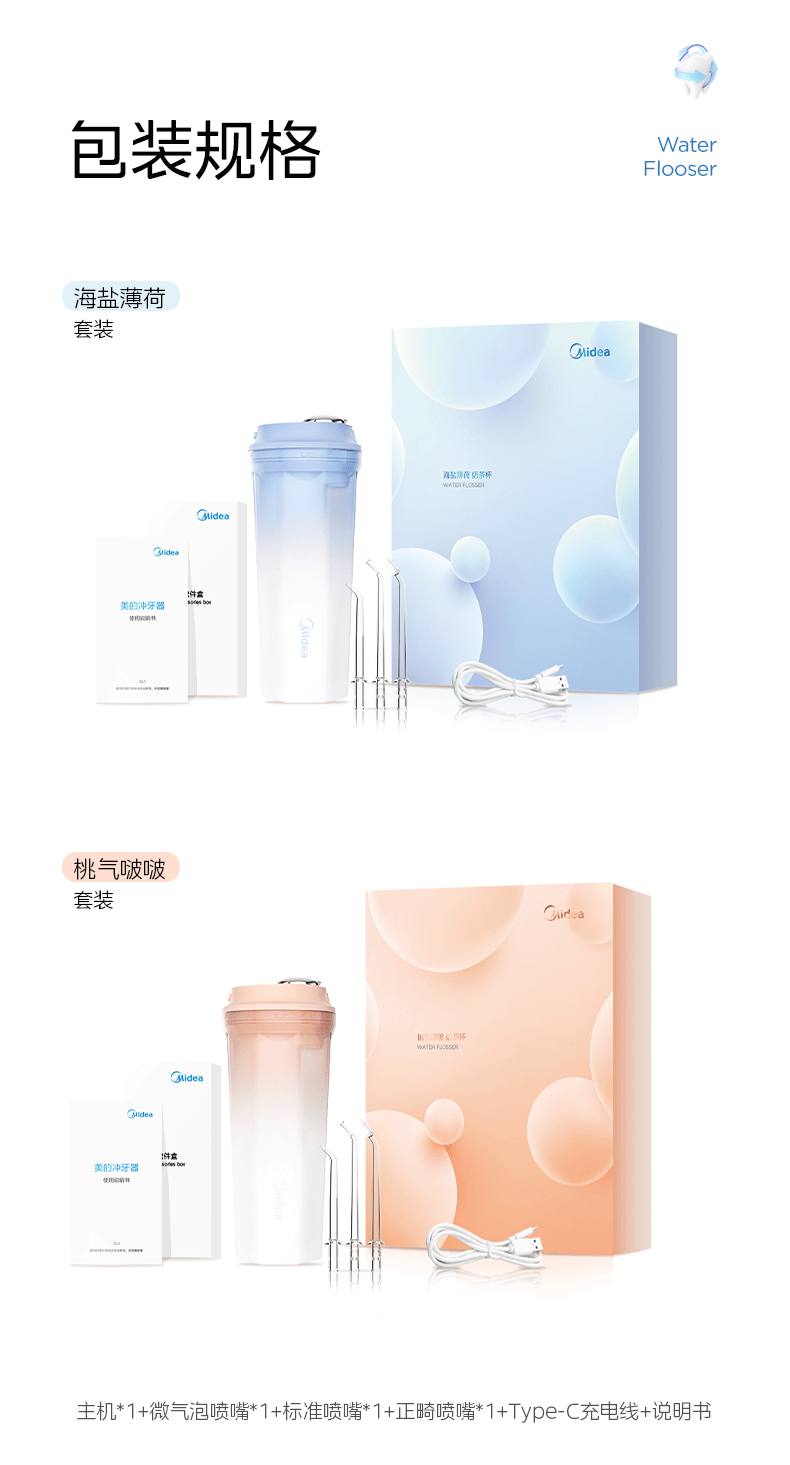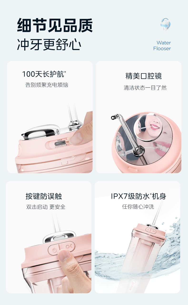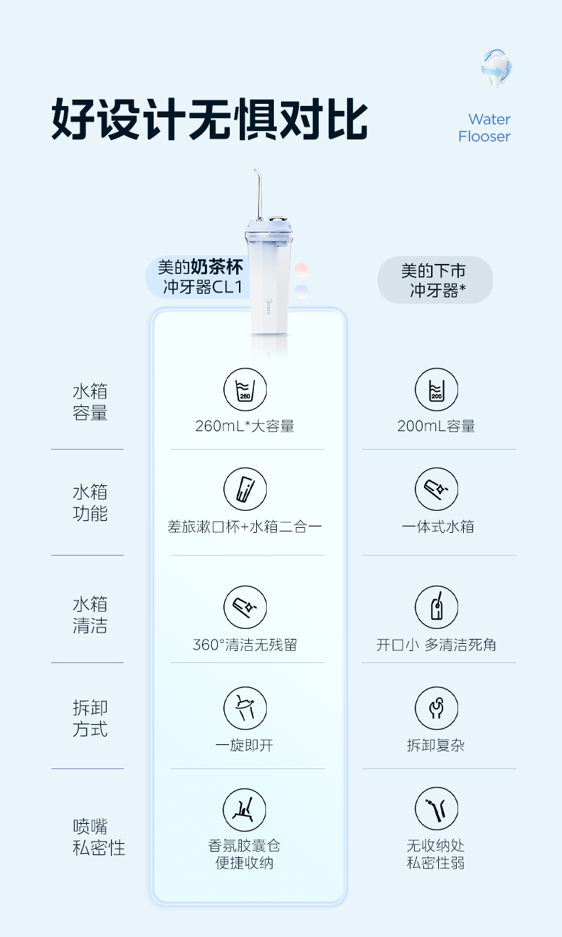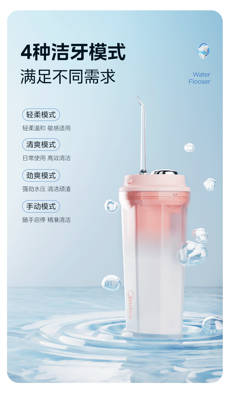美的 CL1 冲牙器家用手持立式洗牙器声波微气泡牙线可填装漱口水精华节日生日男女七夕情人节礼物奶茶杯
