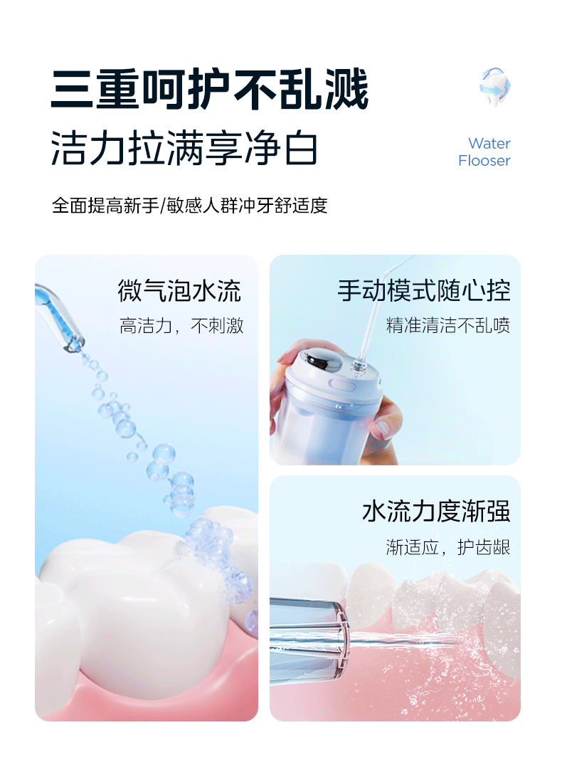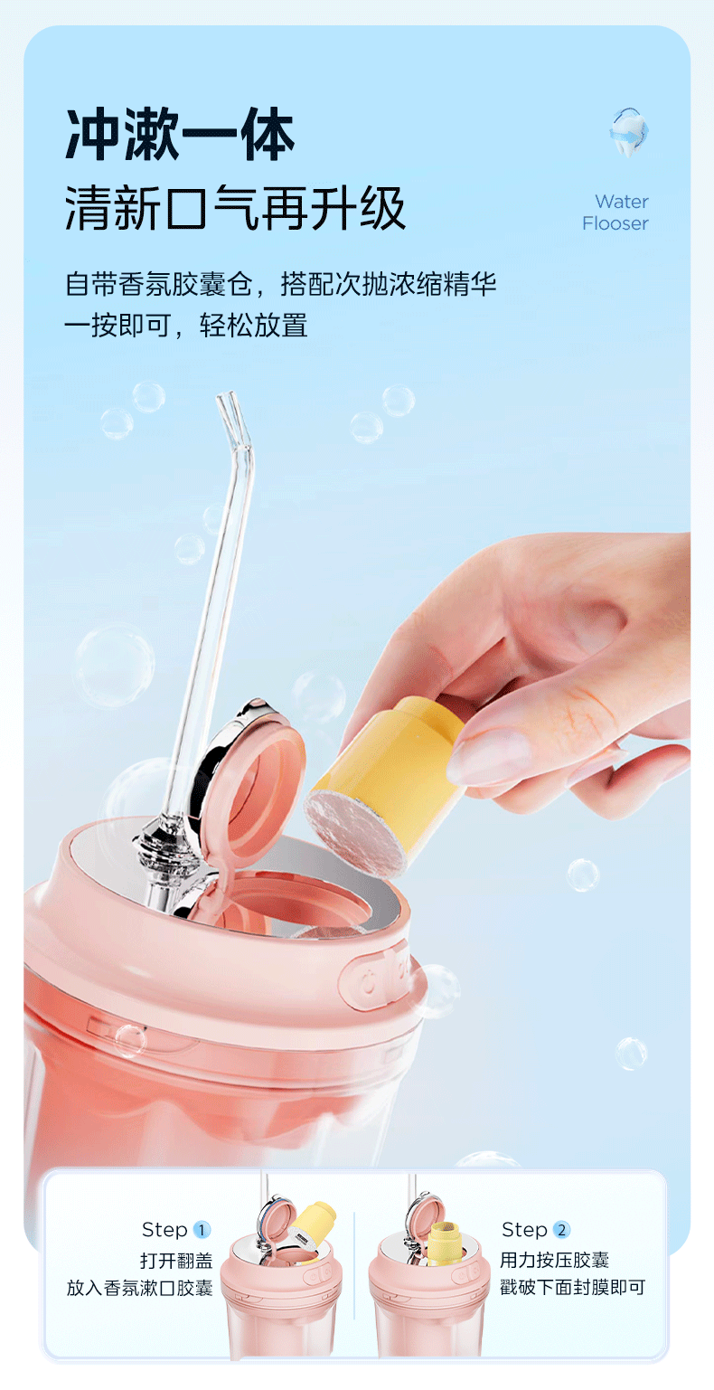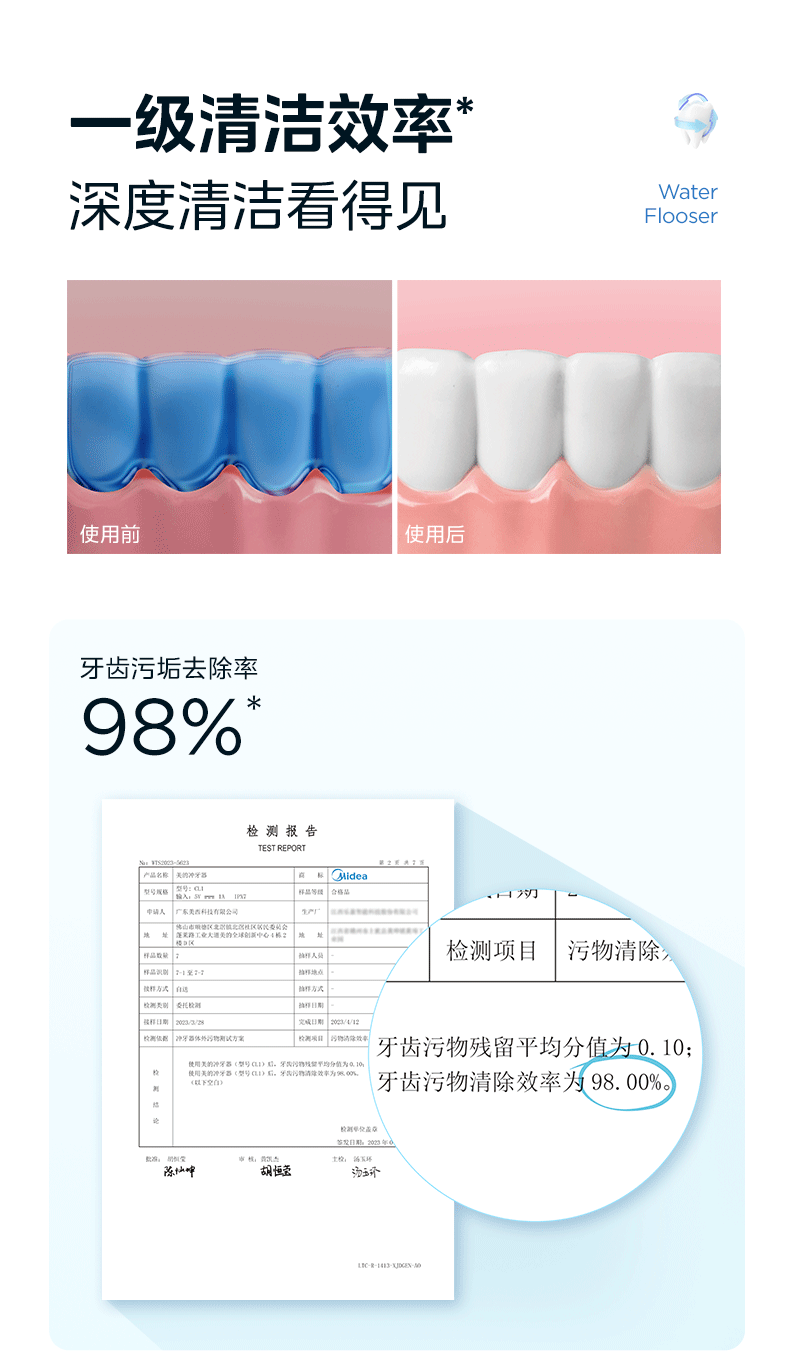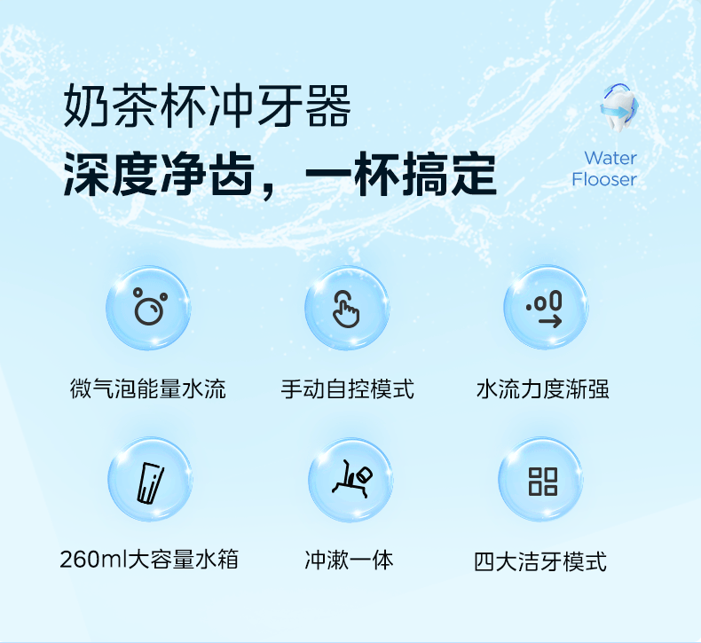 美的 CL1 冲牙器家用手持立式洗牙器声波微气泡牙线可填装漱口水精华节日生日男女七夕情人节礼物奶茶杯