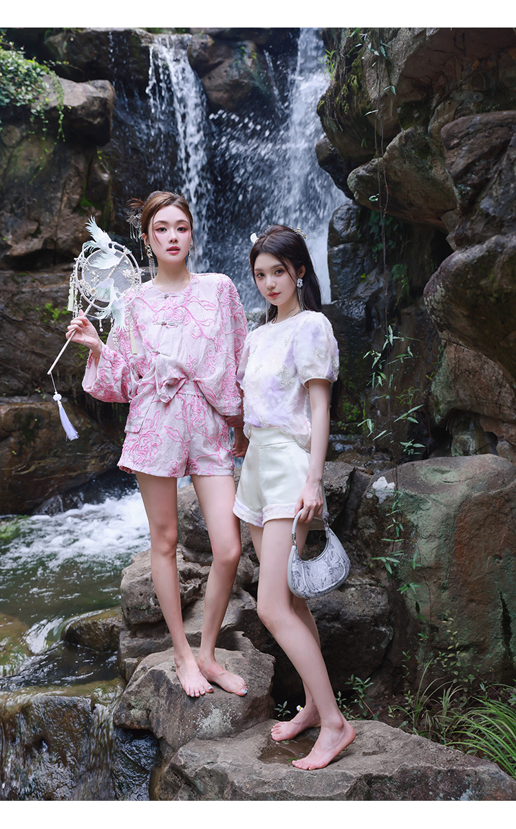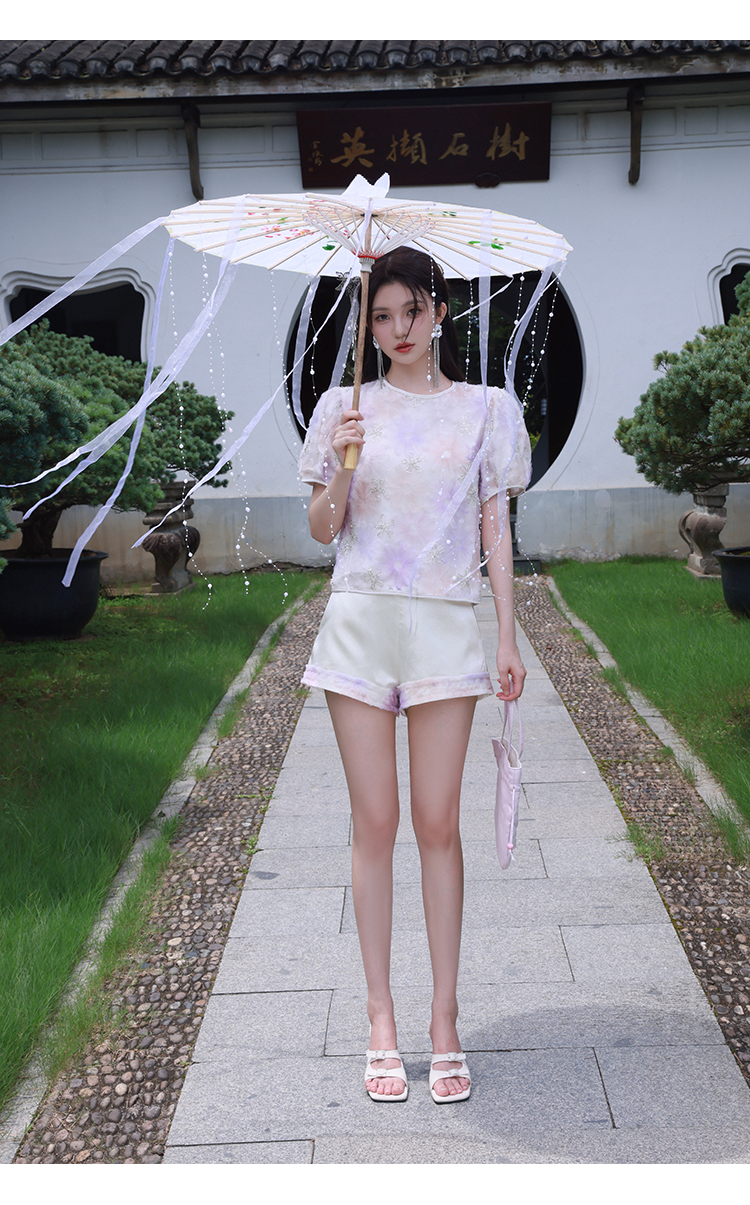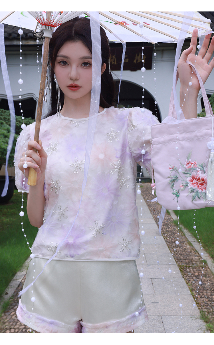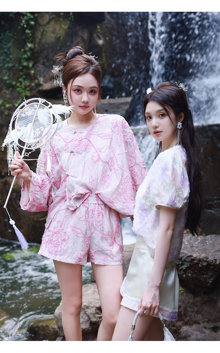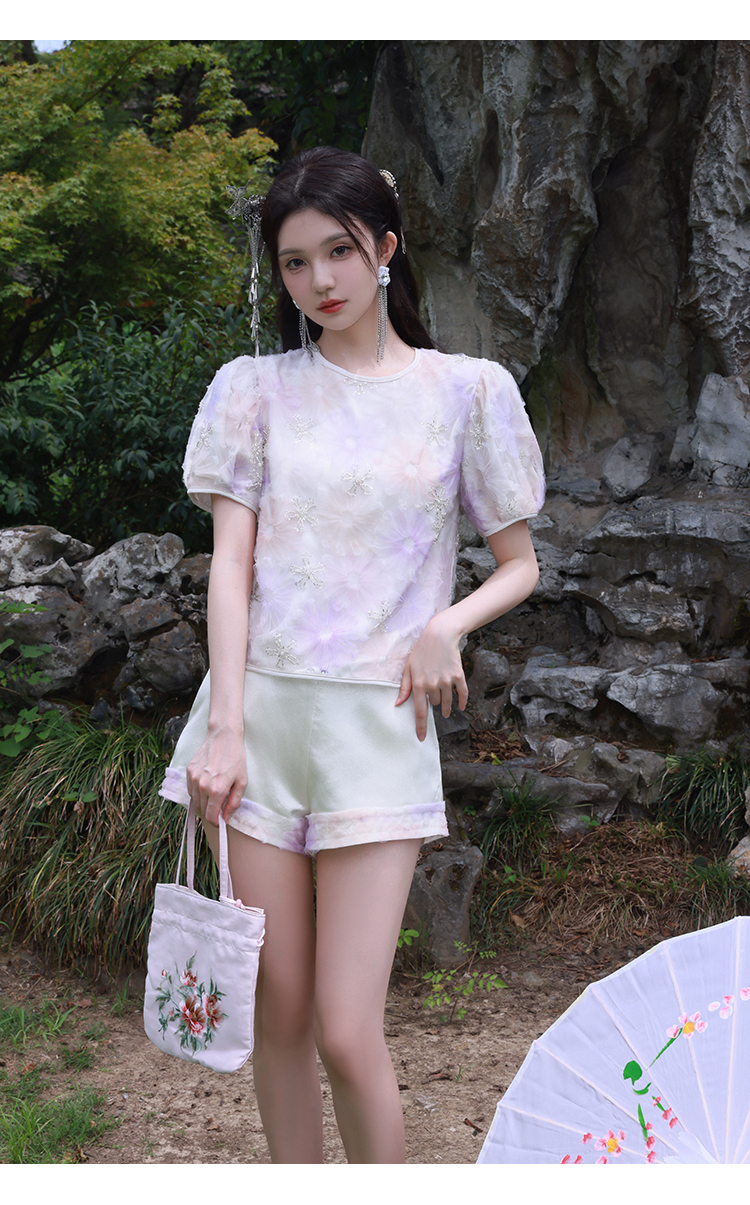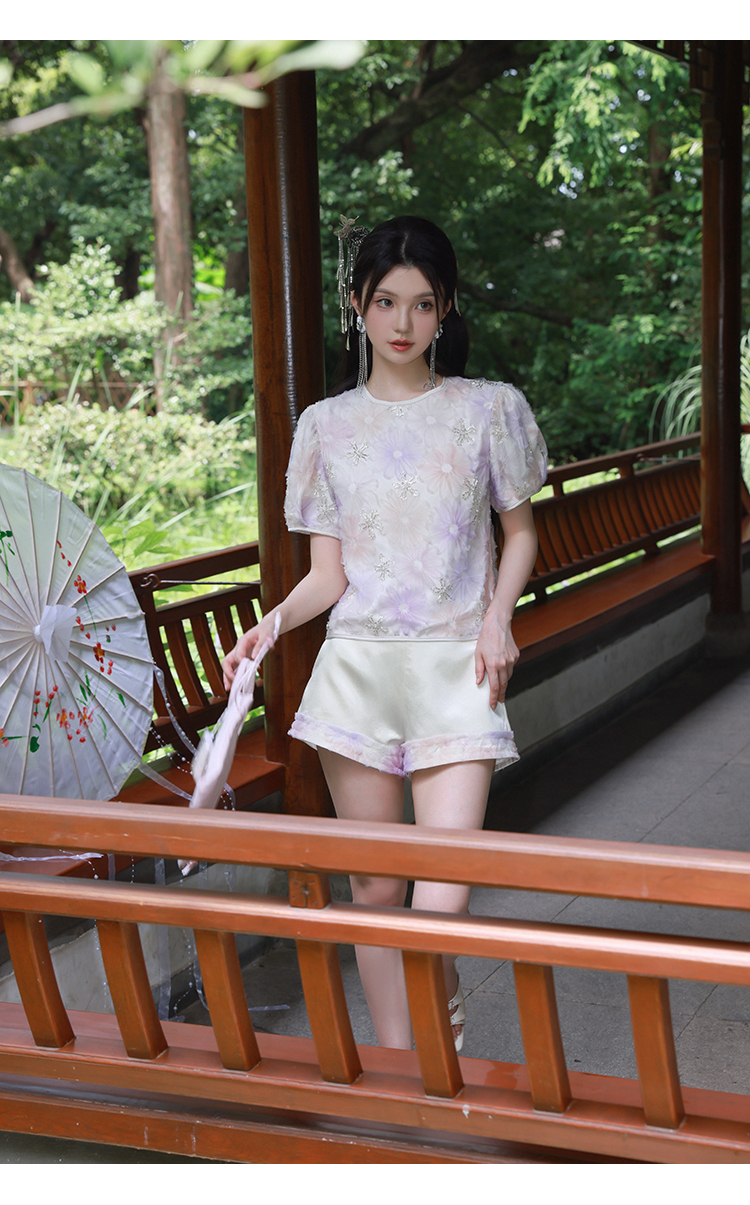 清仓捡漏 【紫霞仙子套装】花朵上衣+花边宽腰短裤套装 LT230042 LK230096