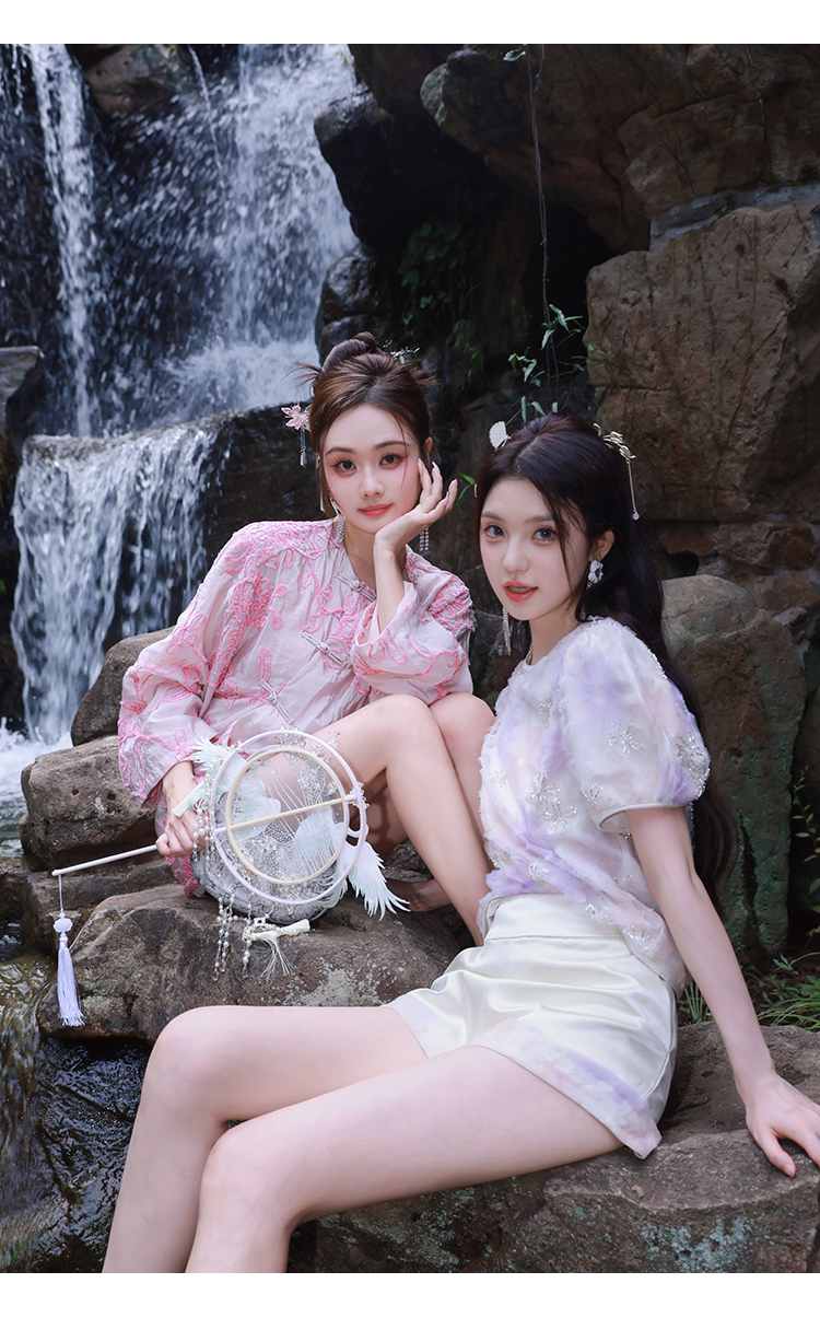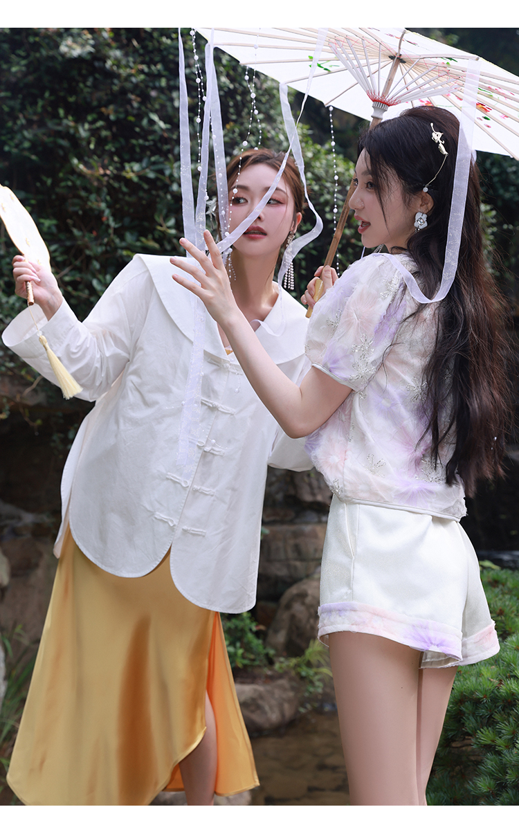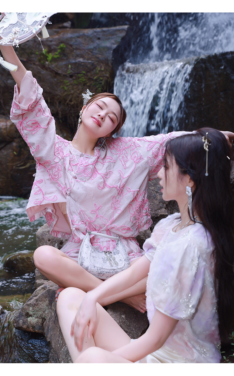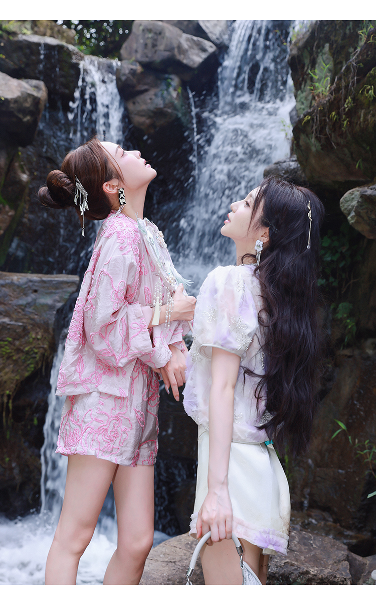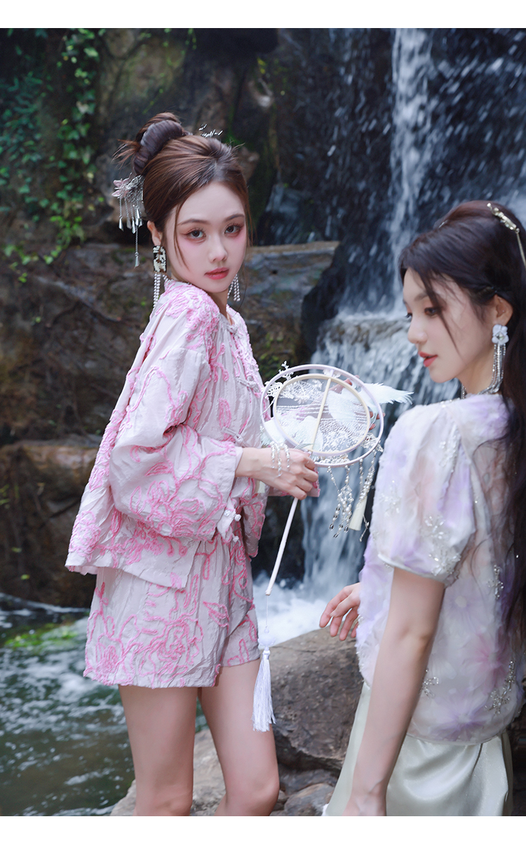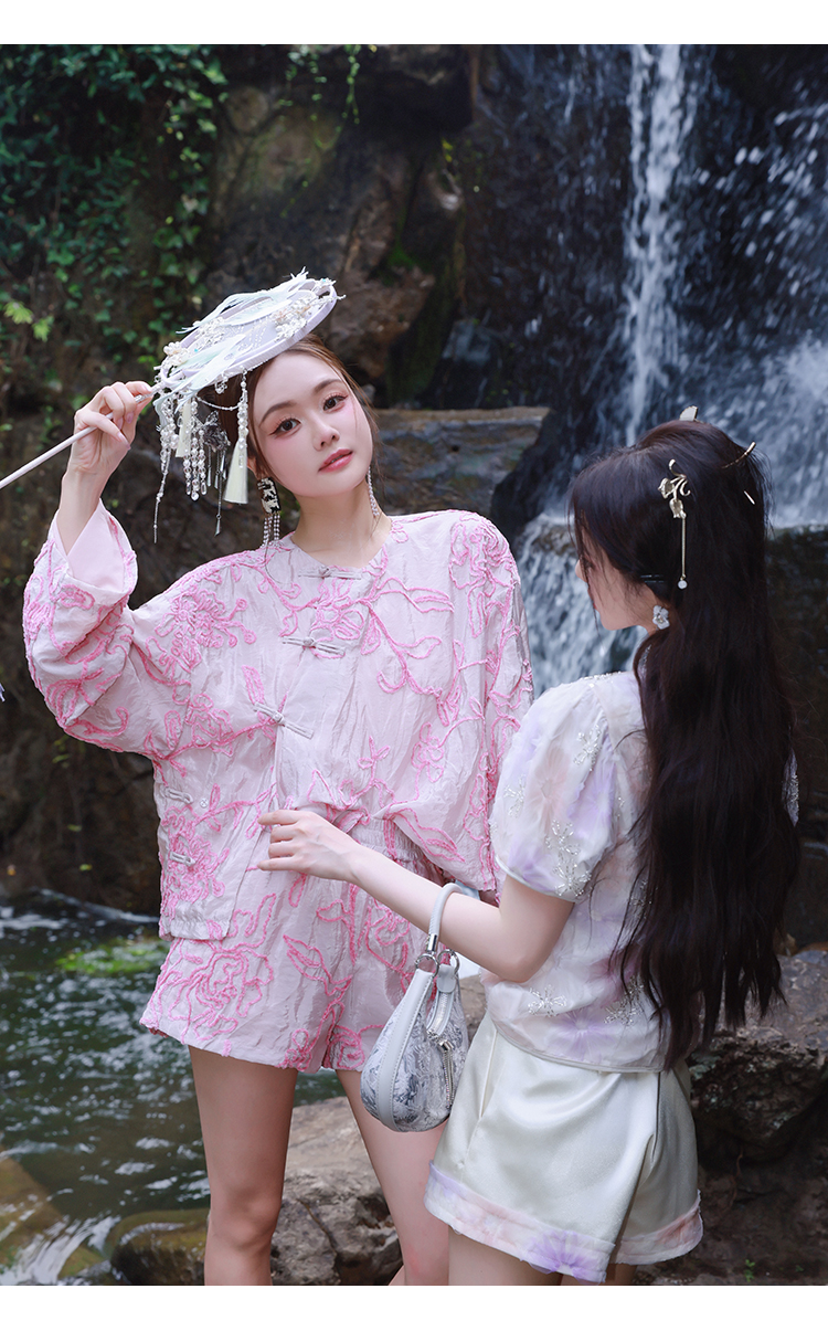 清仓捡漏 【紫霞仙子套装】花朵上衣+花边宽腰短裤套装 LT230042 LK230096