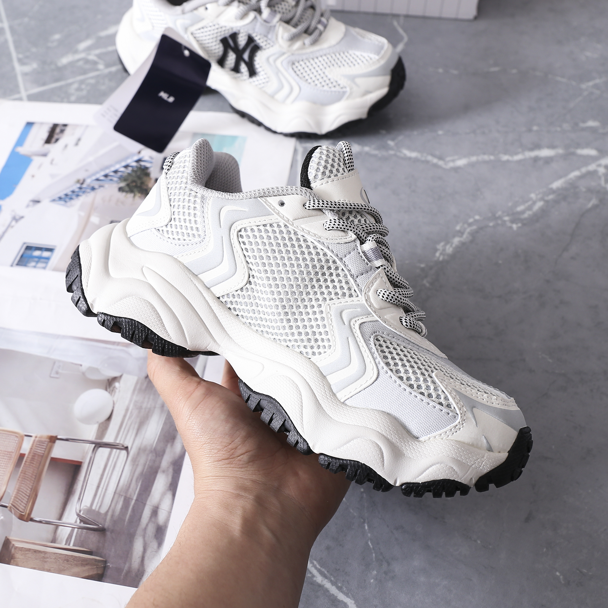 ✅团品:MLB厚底网面增高老爹鞋