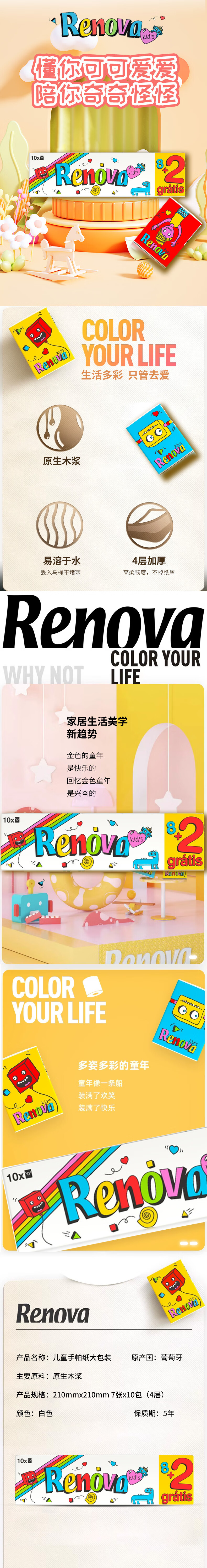 RENOVA儿童手帕纸大包装/117926 原生木浆4层加厚10包