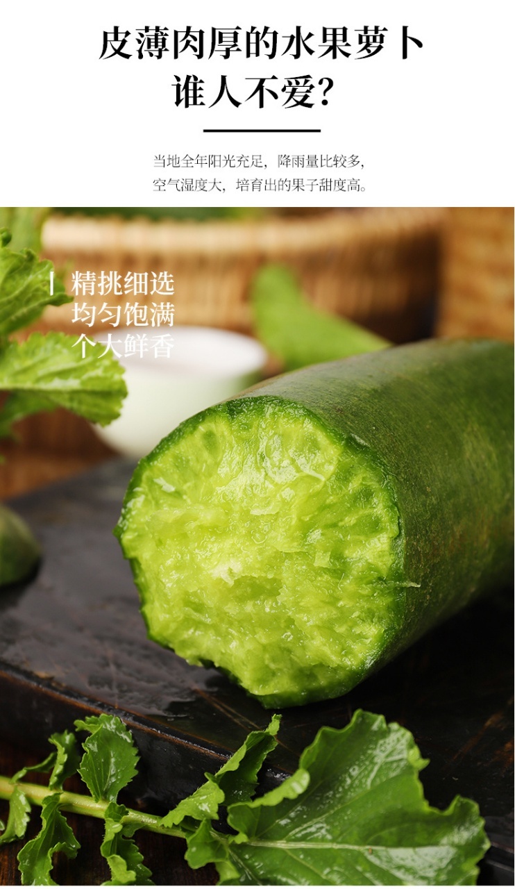 【品名/规格】潍坊水果萝卜(3斤装2-4个,5斤装4-7个)重量为准,个数仅作为参考,不作为售后标准