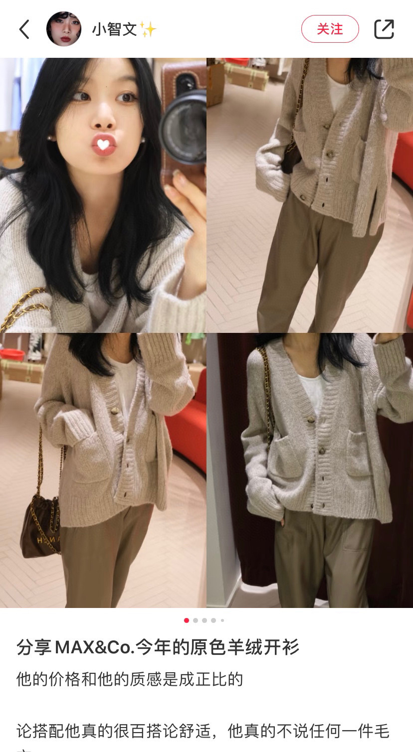 就剩三件亏清无退换 纯圆正 max羊毛羊绒开衫 慵懒显瘦的一塌糊涂