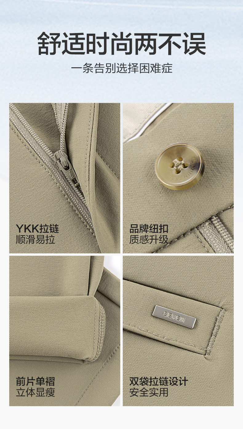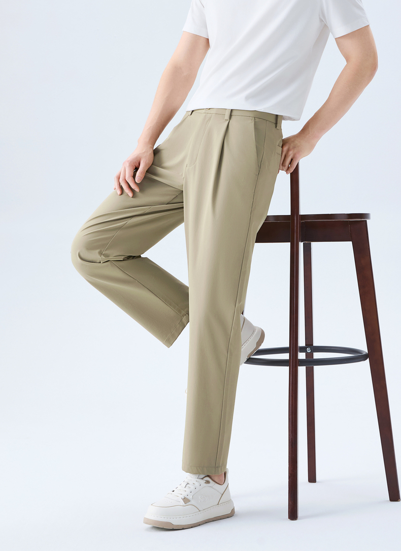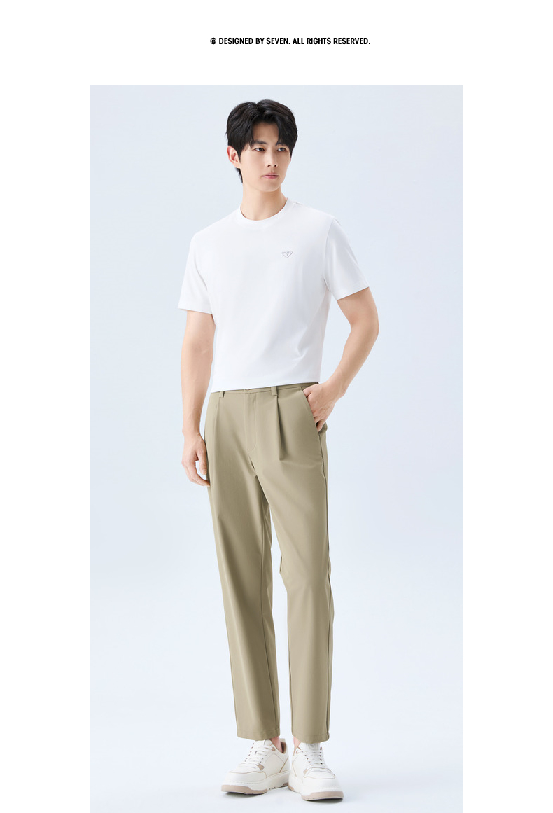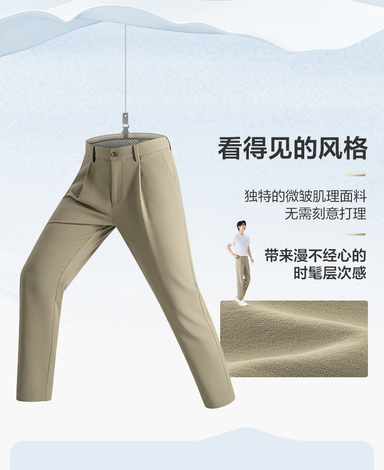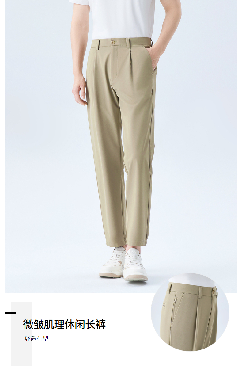 【单褶裤】柒牌男装2026春季微皱肌理亲肤中青年舒适休闲长裤男130H71760