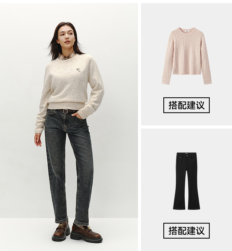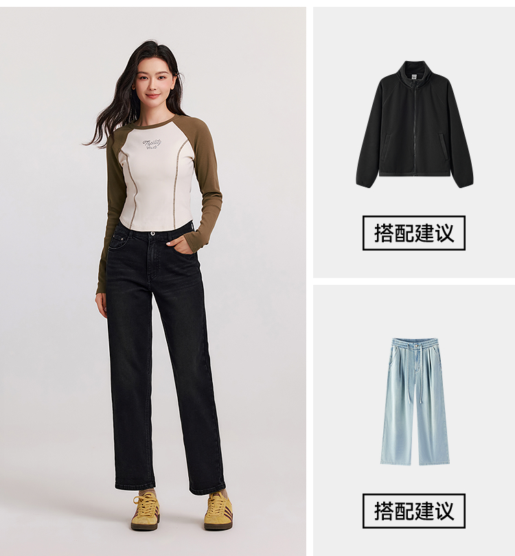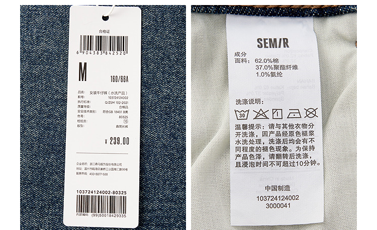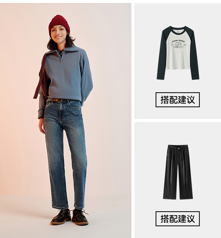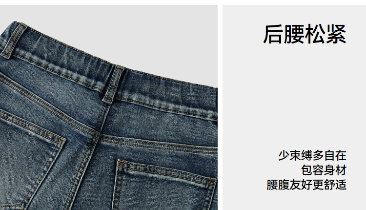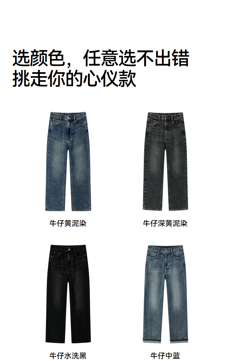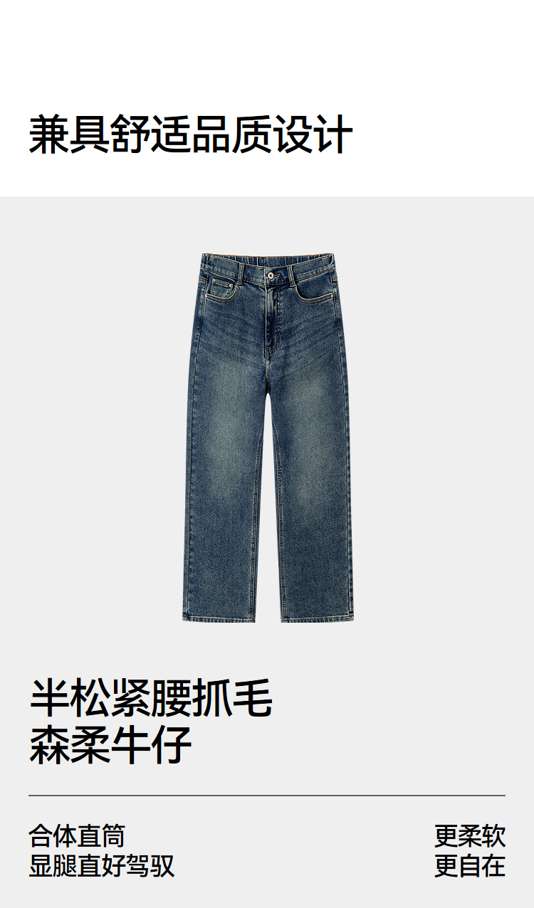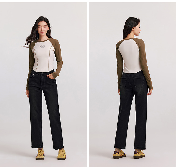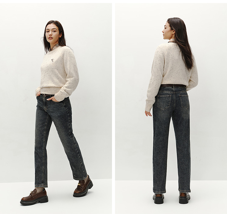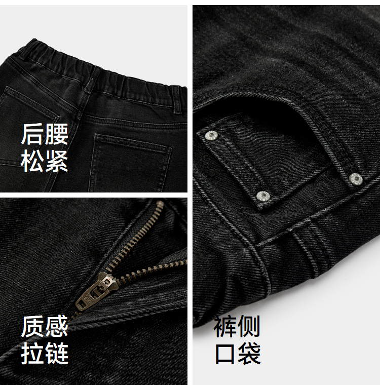森柔牛仔|森马牛仔裤女抓毛长裤女生冬季半松紧腰直筒裤美式休闲