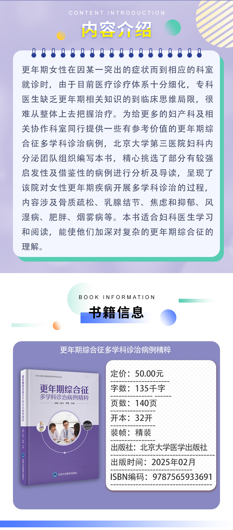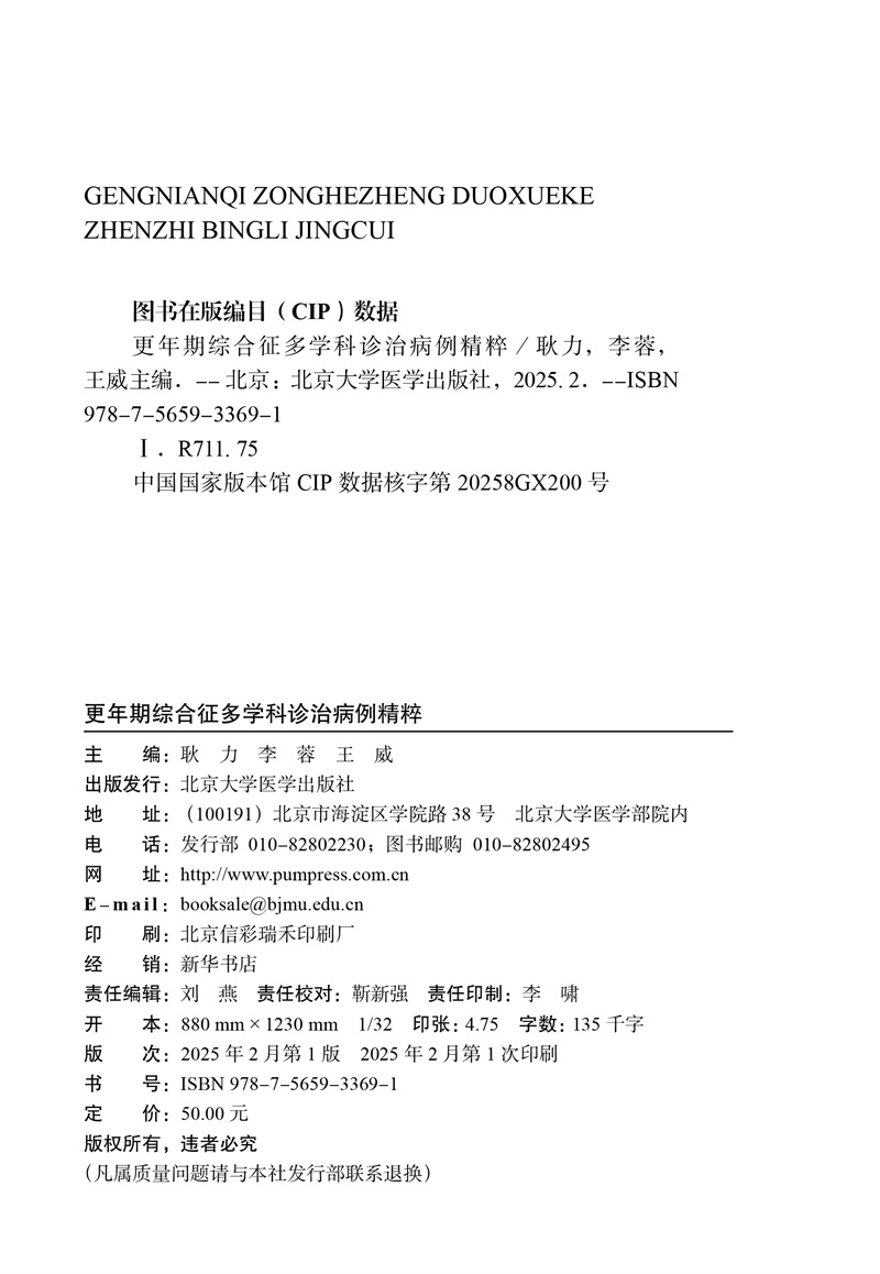 更年期综合征多学科诊治病例精粹 北京大学第三医院妇科多学科诊治丛书 耿力 李蓉 王威 主编 9787565933691 北京大学医学出版社