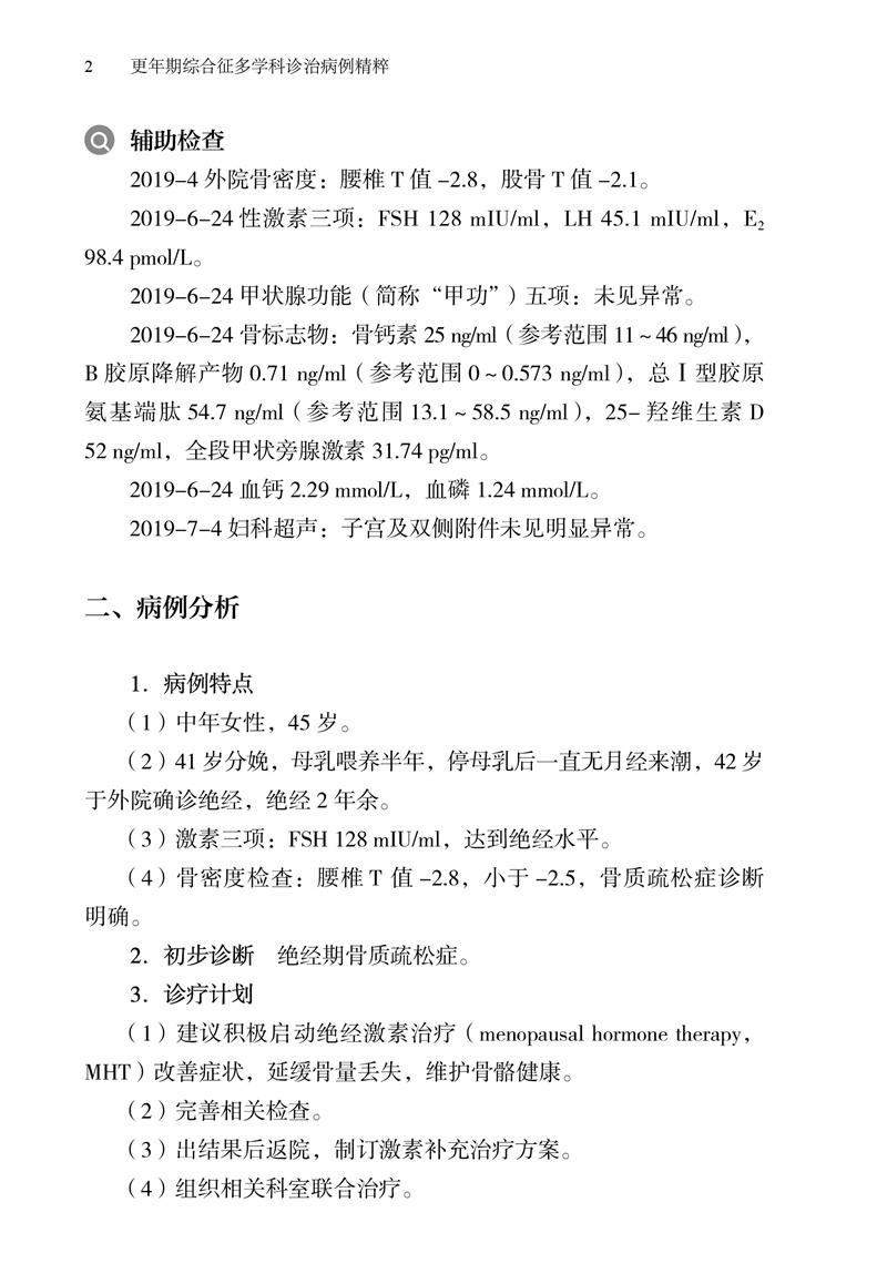 更年期女性在因某一突出的症状而到相应的科室就诊时,由于目前医疗诊疗体系十分细化,专科医生缺乏更年期相关知识的到临床思维局限,很难从整体上去把握治疗。为给更多的妇产科及相关协作科室同行提供一些有参考价值的更年期综合征多学科诊治病例,北京大学第三医院妇科内分泌团队组织编写本书,精心挑选了部分有较强启发性及借鉴性的病例进行分析及导读,呈现了该院对女性更年期疾病开展多学科诊治的过程,内容涉及骨质疏松、乳腺结节、焦虑和抑郁、风湿病、肥胖、烟雾病等。本书适合妇科医生学习和阅读,能使他们加深对复杂的更年期综合征的理解。
