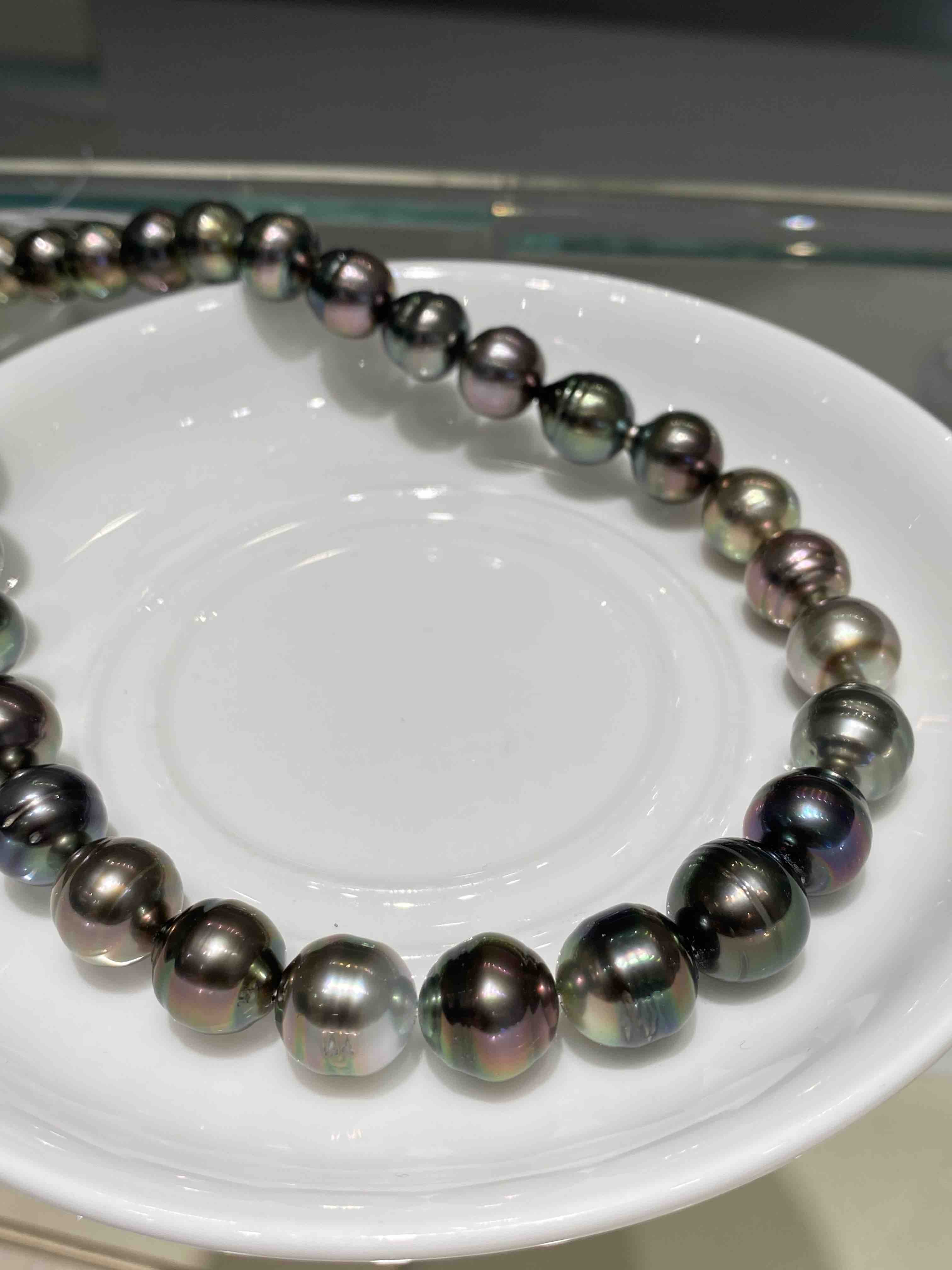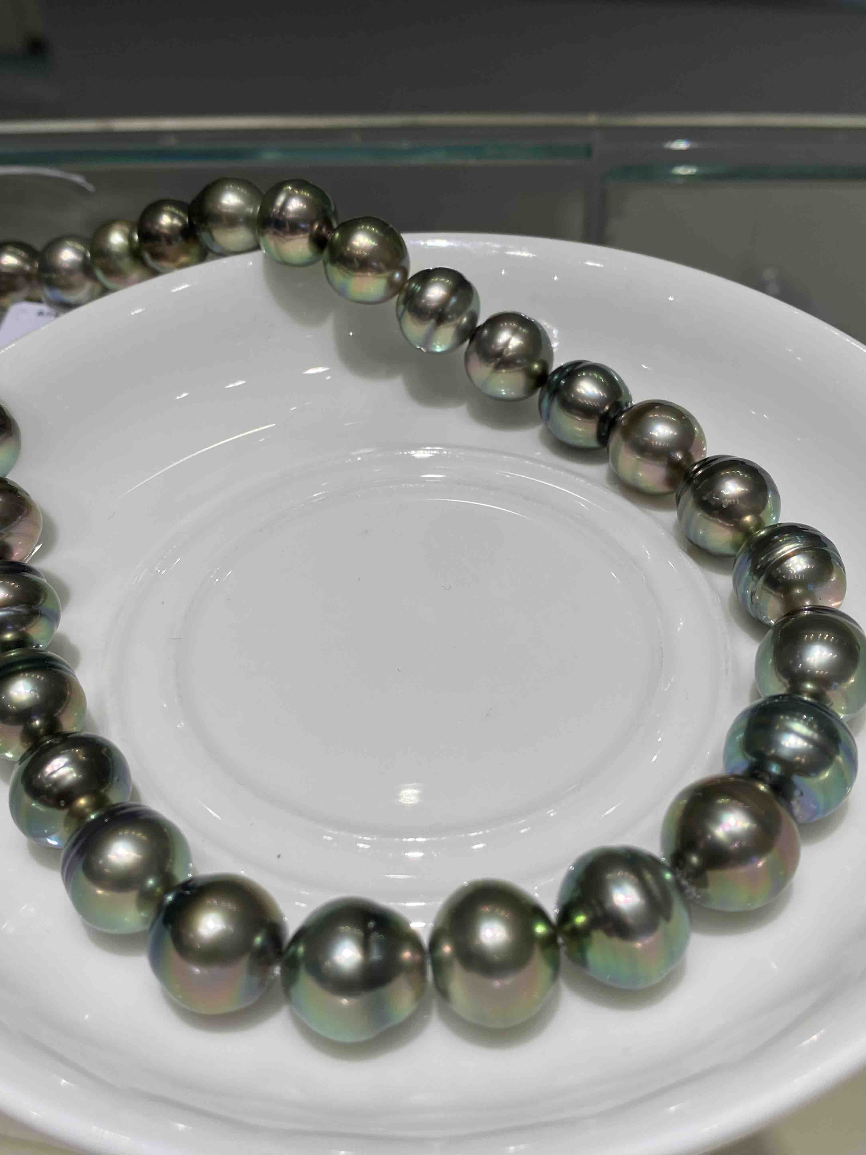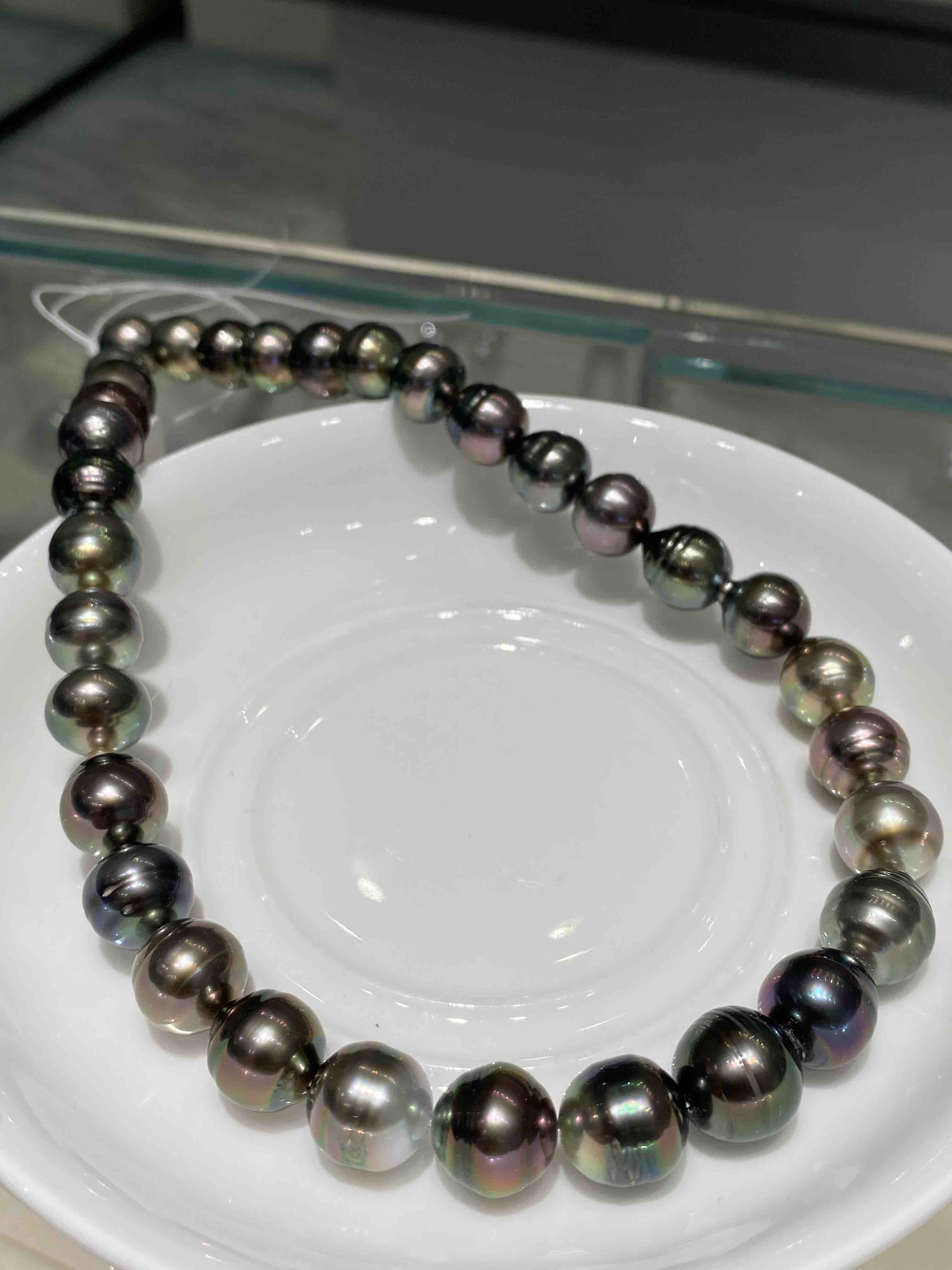 【私席真珠·新年盛宴】大溪地混彩螺纹黑珍珠项链,晕彩丰富,珠光巨亮