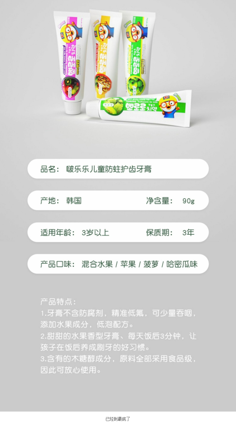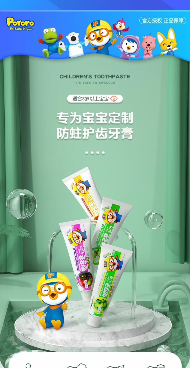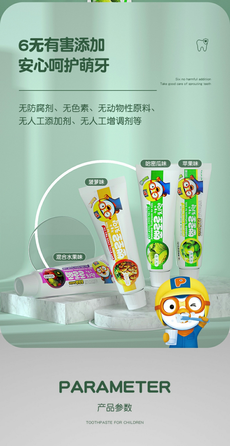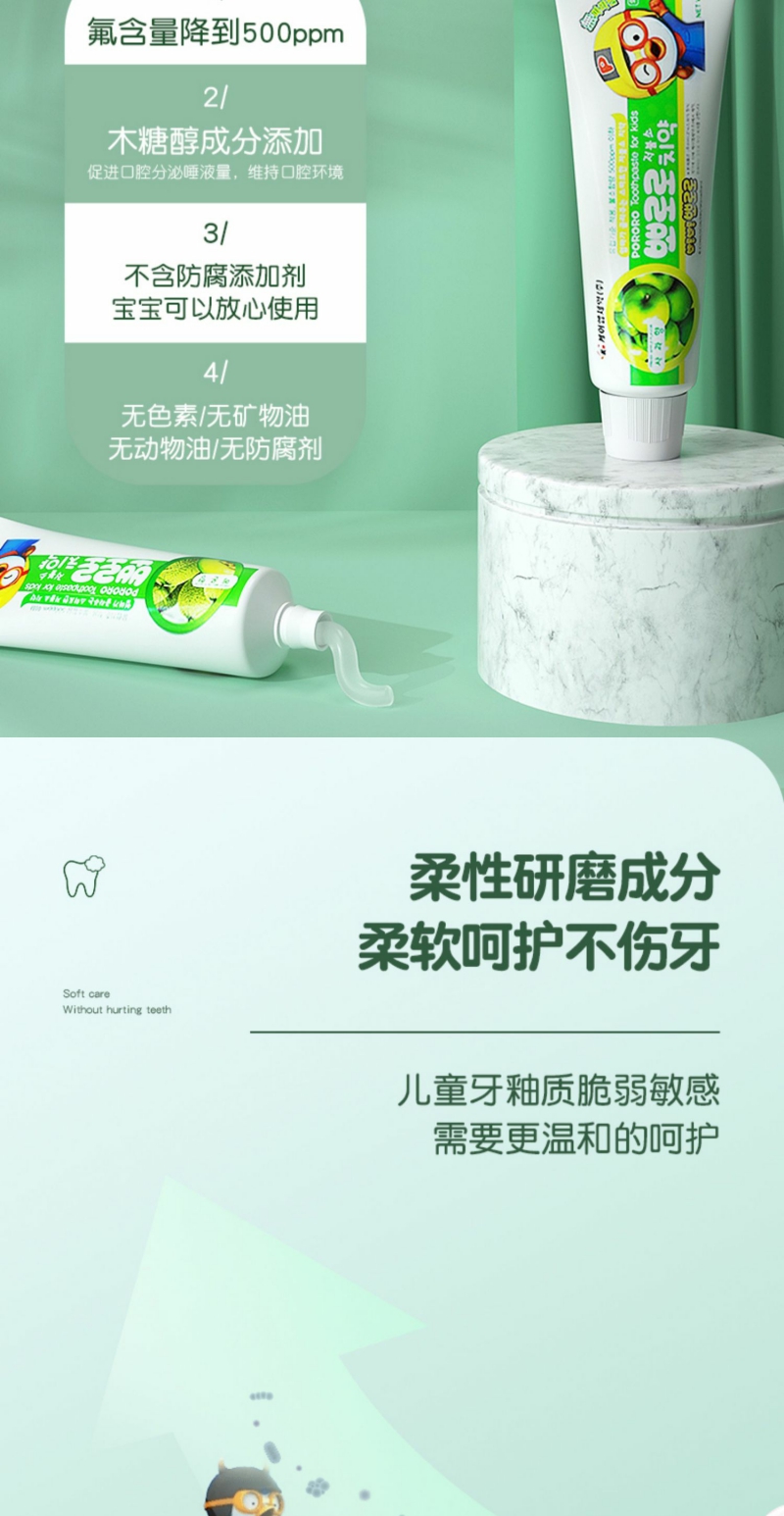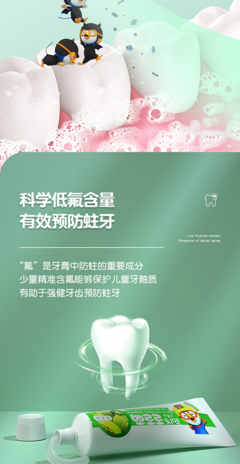 【YZ】韩国Pororo啵乐乐儿童宝宝防蛀牙膏宝露露口腔清洁低氟3-12岁