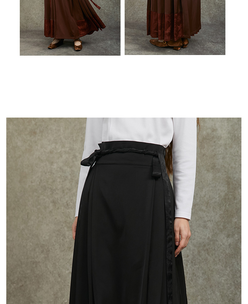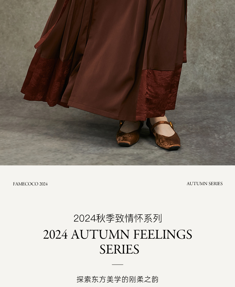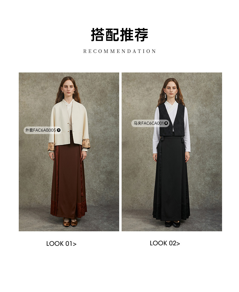 Famecoco范可儿高级缎感马面裙国风显瘦日常半身裙FAC6HA023