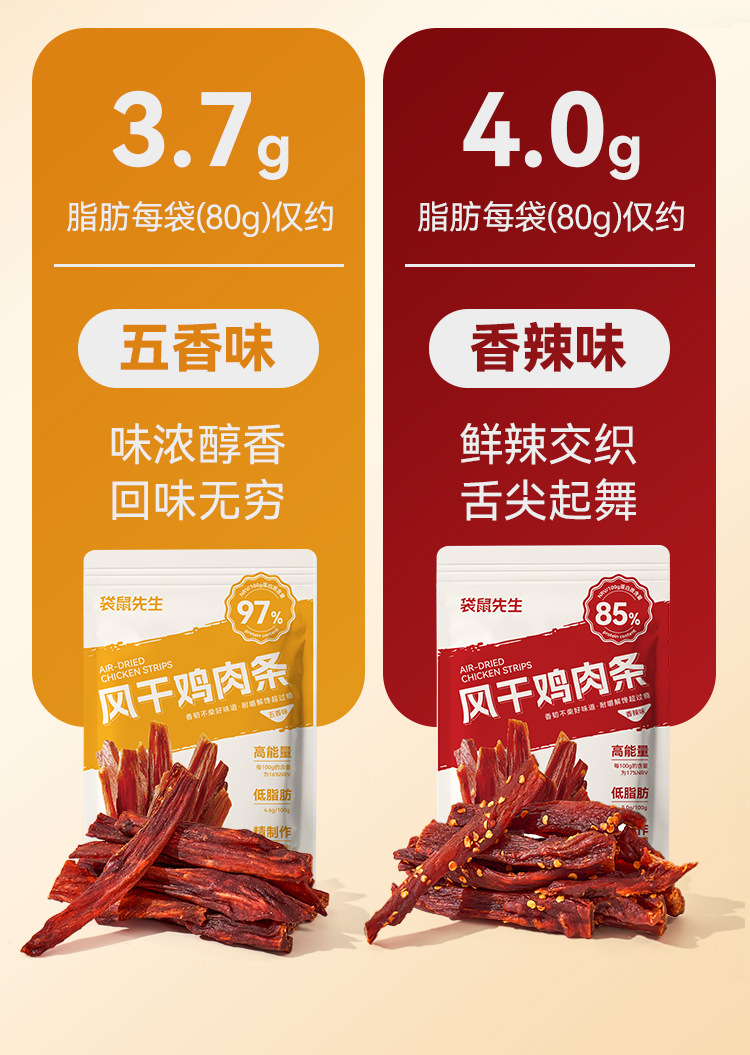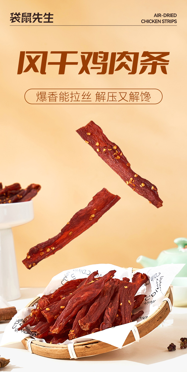 春节不打烊!【爆香能拉丝,解压又解馋】袋鼠先生手撕风干鸡肉干 耐嚼不柴高蛋白质 自然风干鸡肉条 休闲零食下午茶-QQ