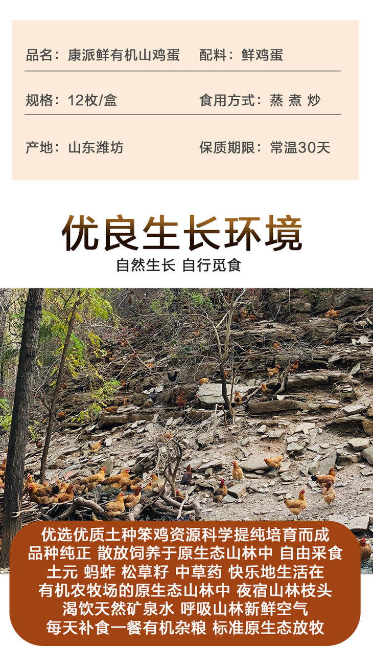 康派鲜有机山鸡蛋12枚