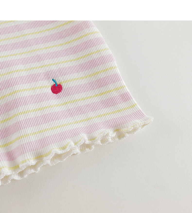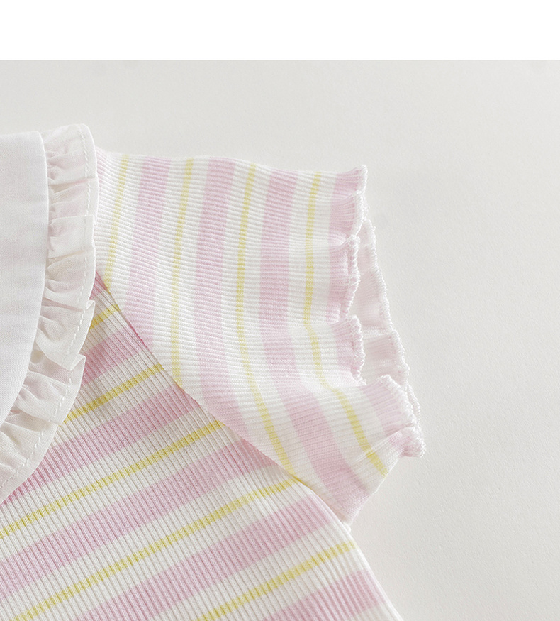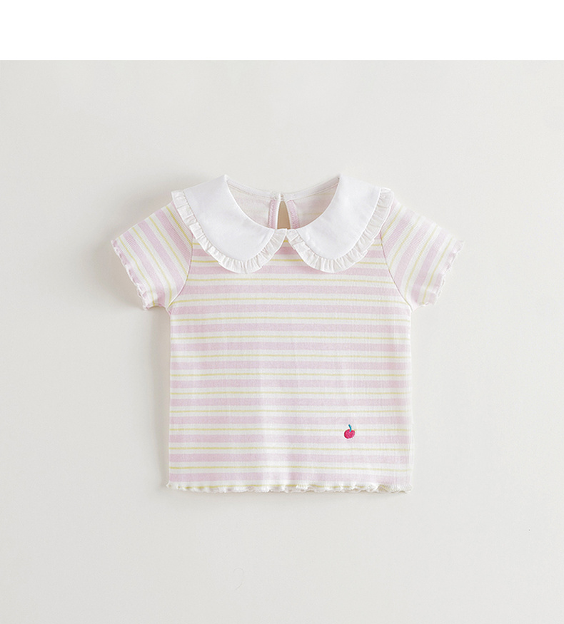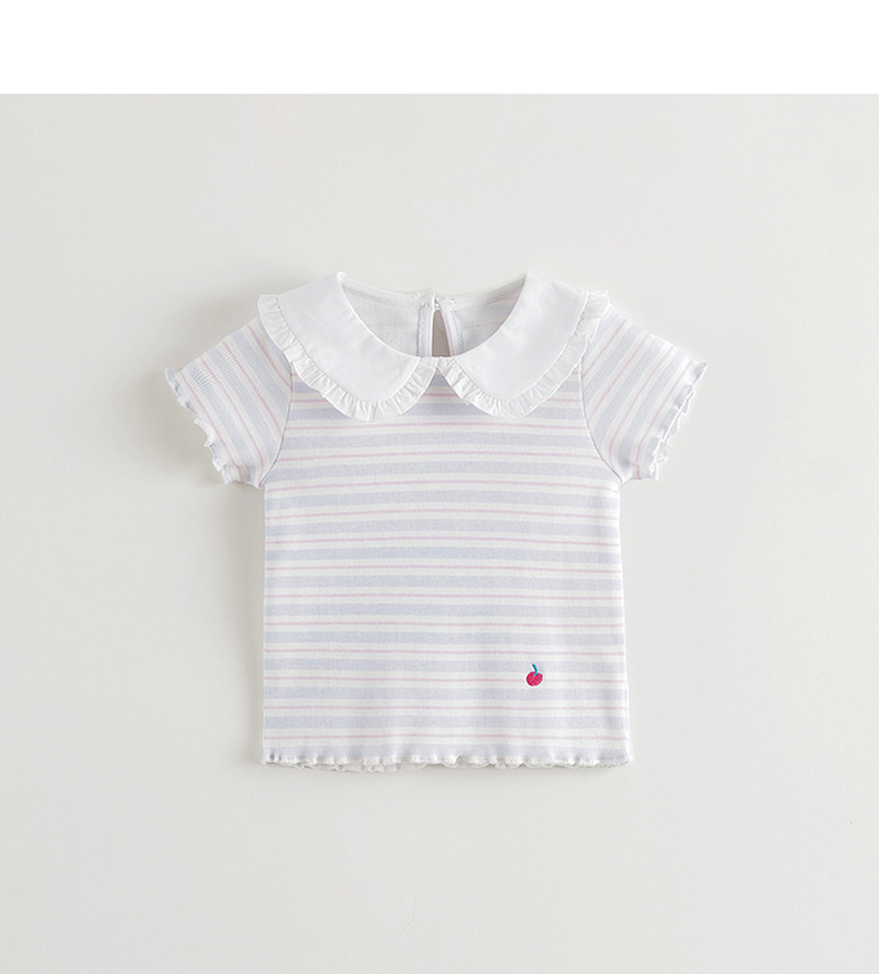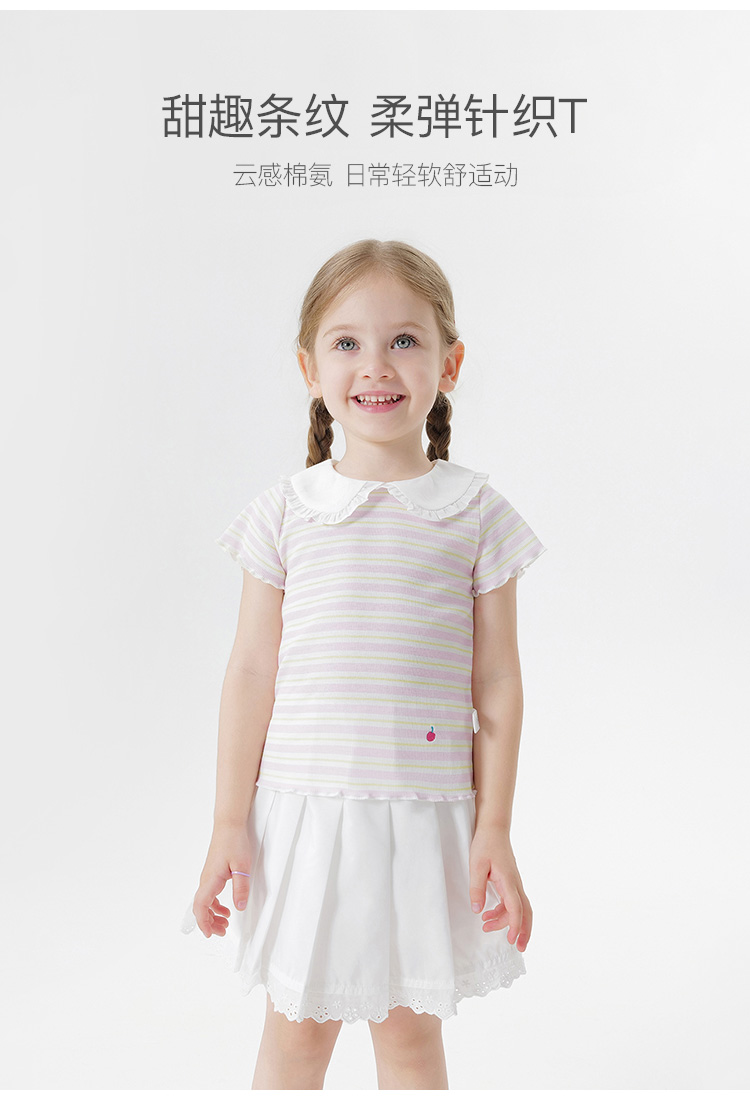马克珍妮女童甜趣条纹荷叶领短袖T恤 宝宝上衣2025夏装新款550755