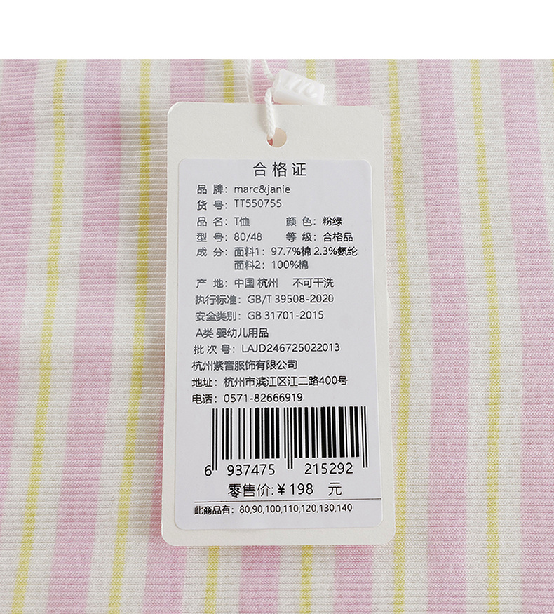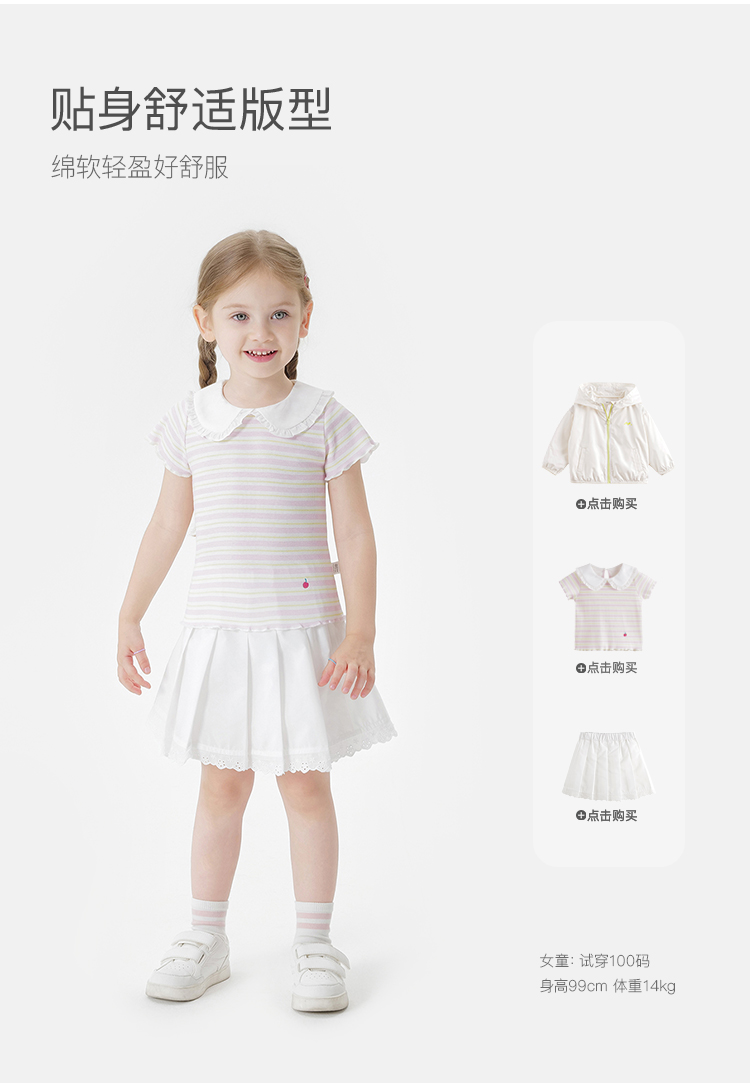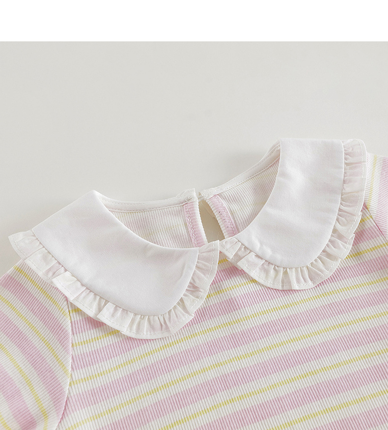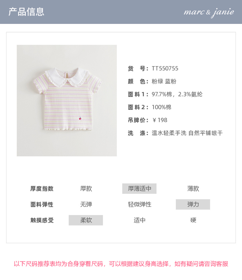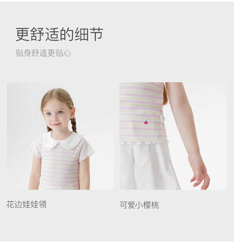 马克珍妮女童甜趣条纹荷叶领短袖T恤 宝宝上衣2025夏装新款550755