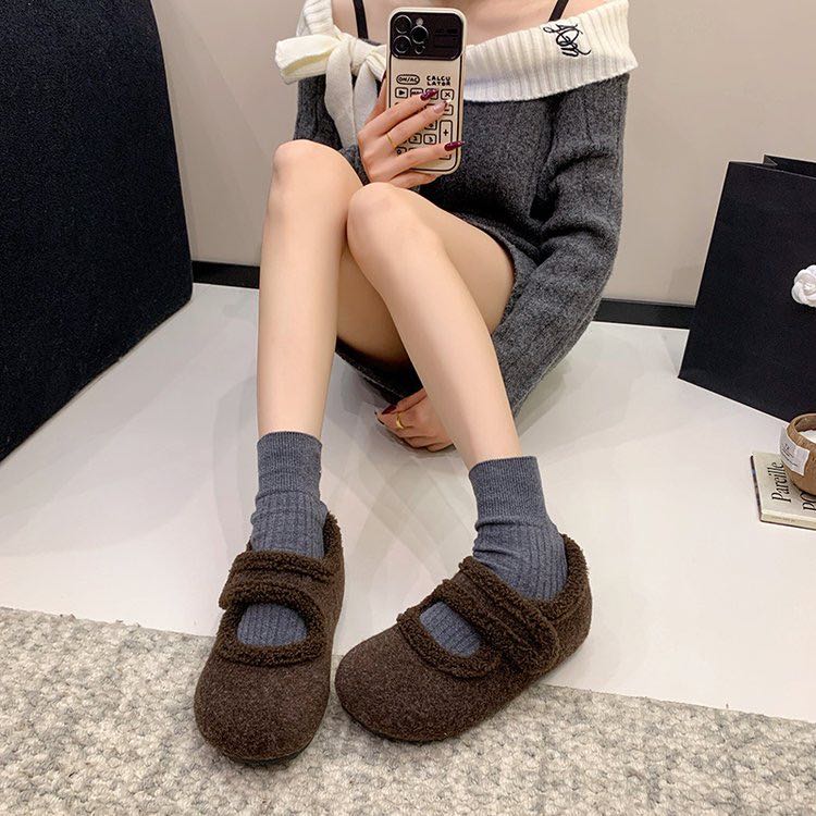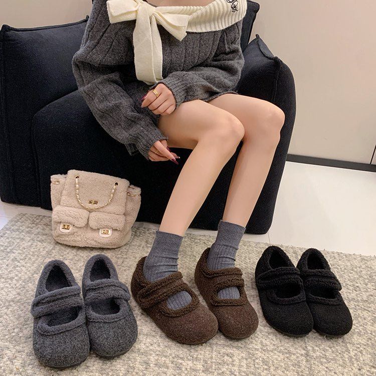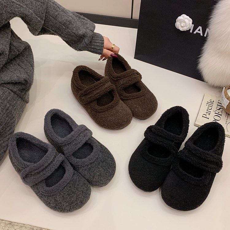 【YW】无忧购加绒玛丽珍鞋女秋冬毛毛鞋呢面勃肯棉鞋F17(截单后3-5天发货)
