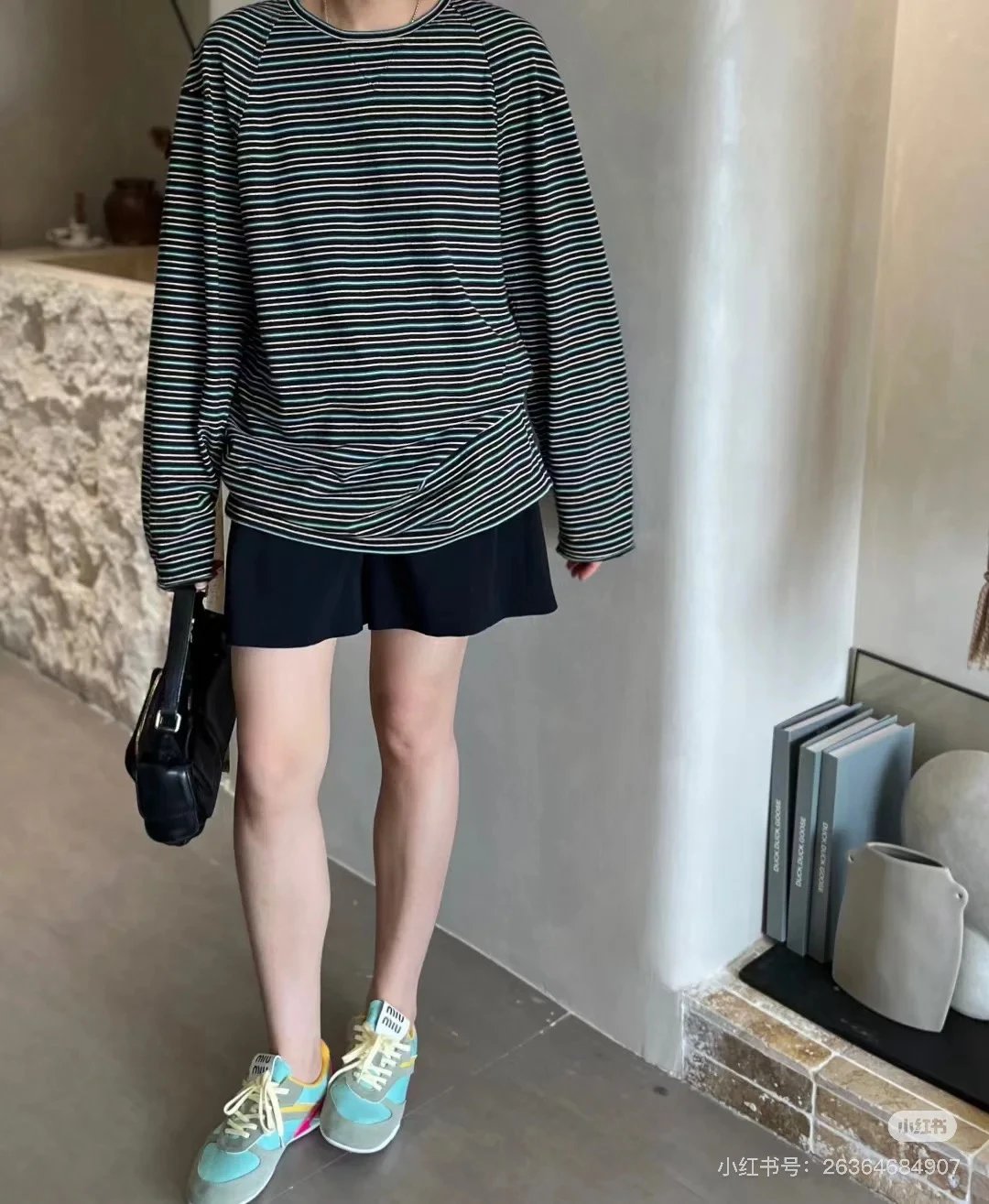 人手B入! into天丝亚麻条纹 刘雯同款罩衫 康宝莱纱线 舒爽不粘腻 透气针织长袖T恤