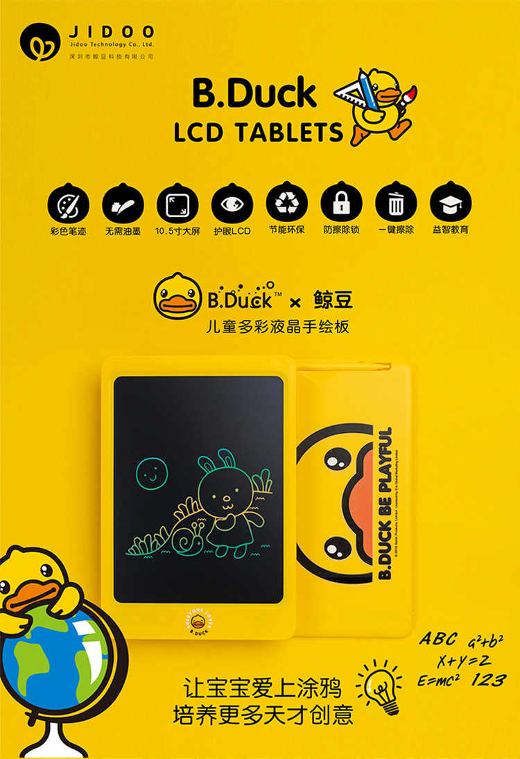 B.Duck小黄鸭儿童彩色液晶画板手写板涂鸦手绘板电子小黑板写字板