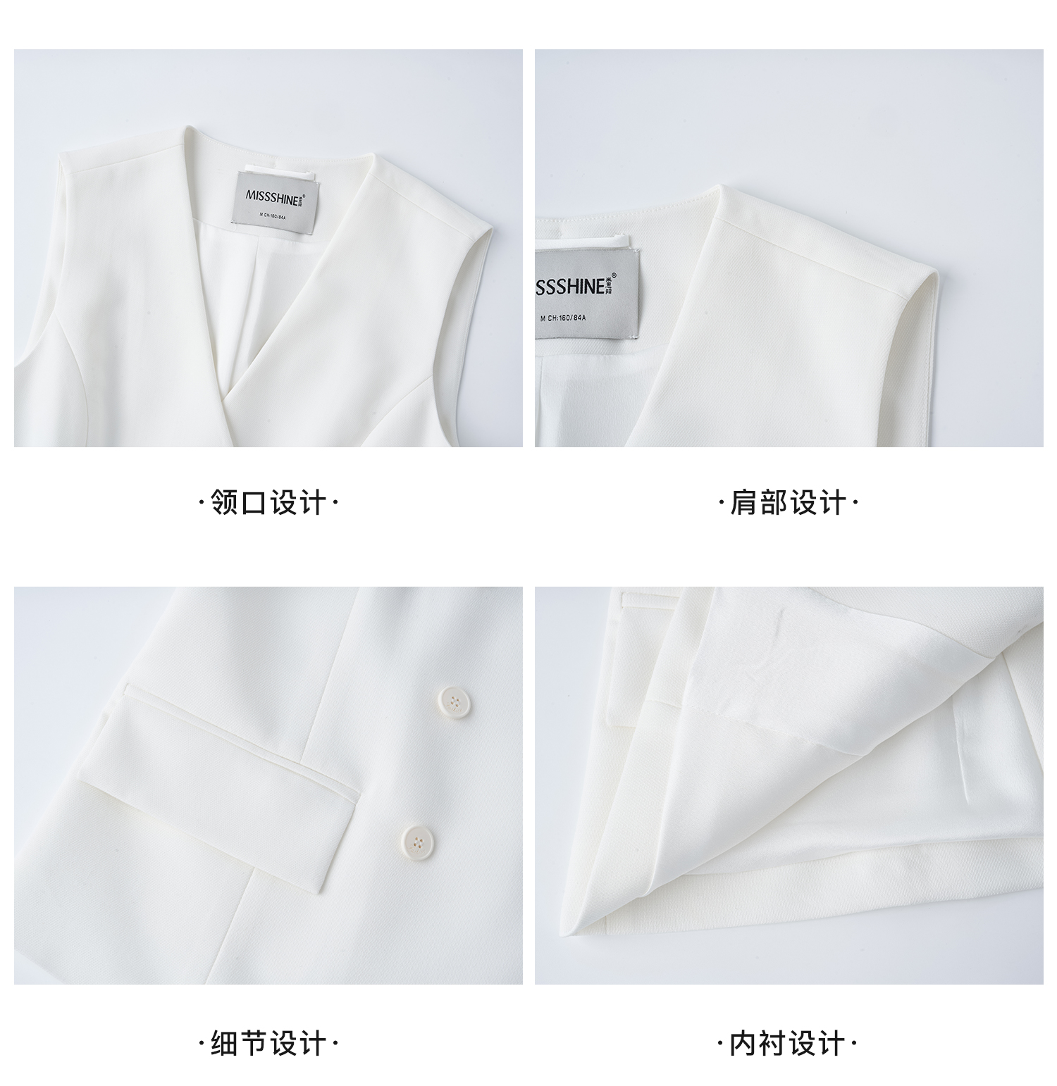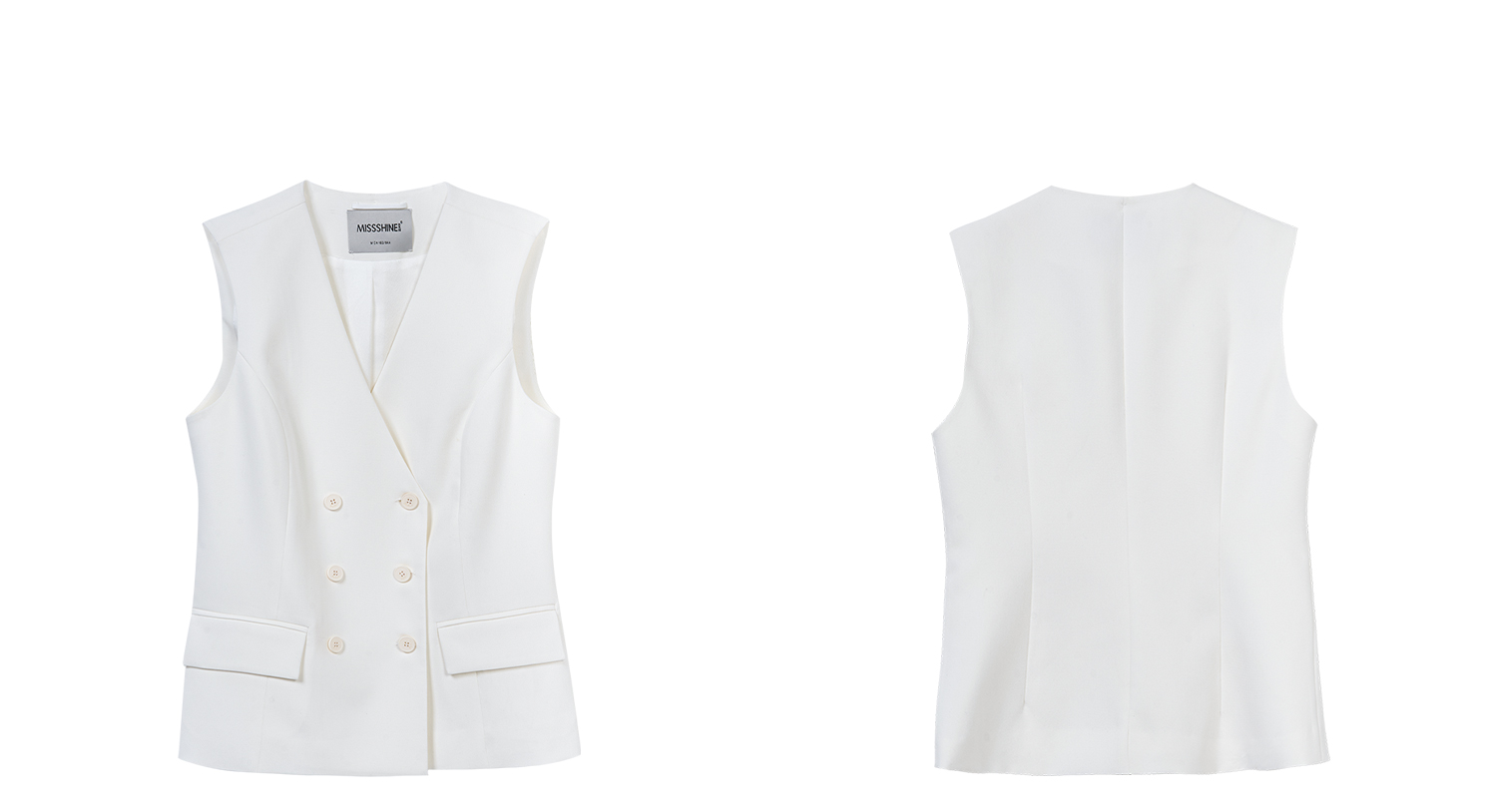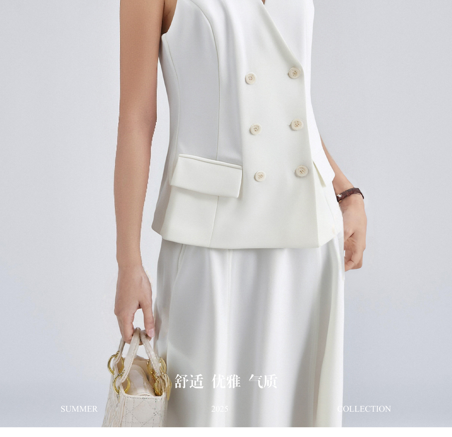 米思阳2026春季老钱风极简双排扣无袖马甲修身显瘦白色外套女4340