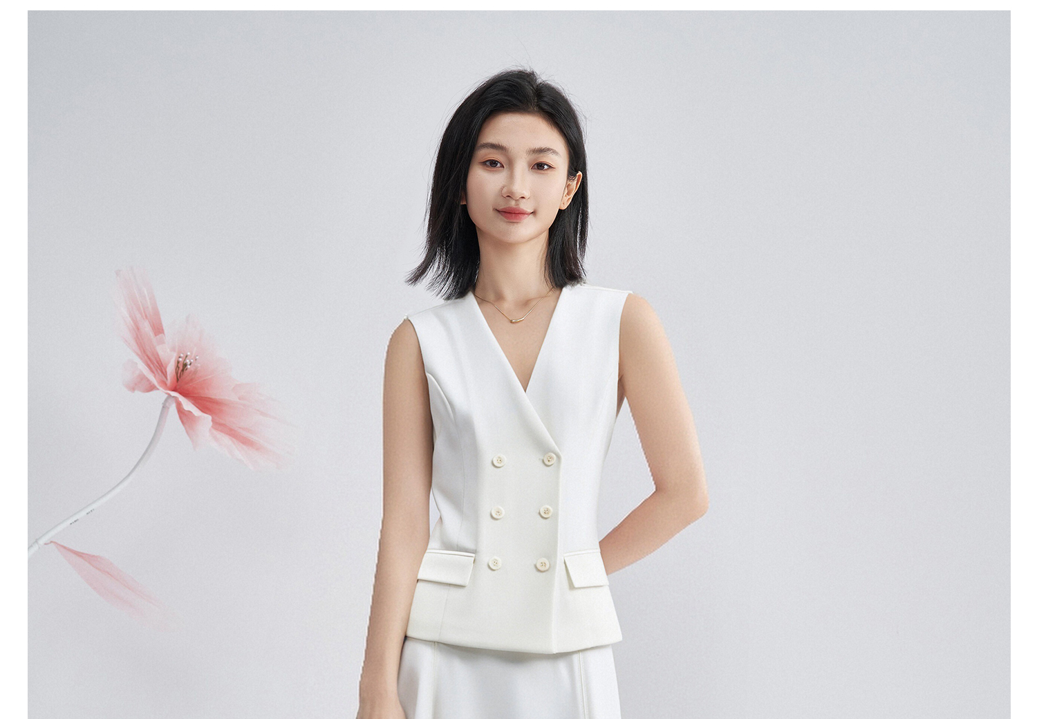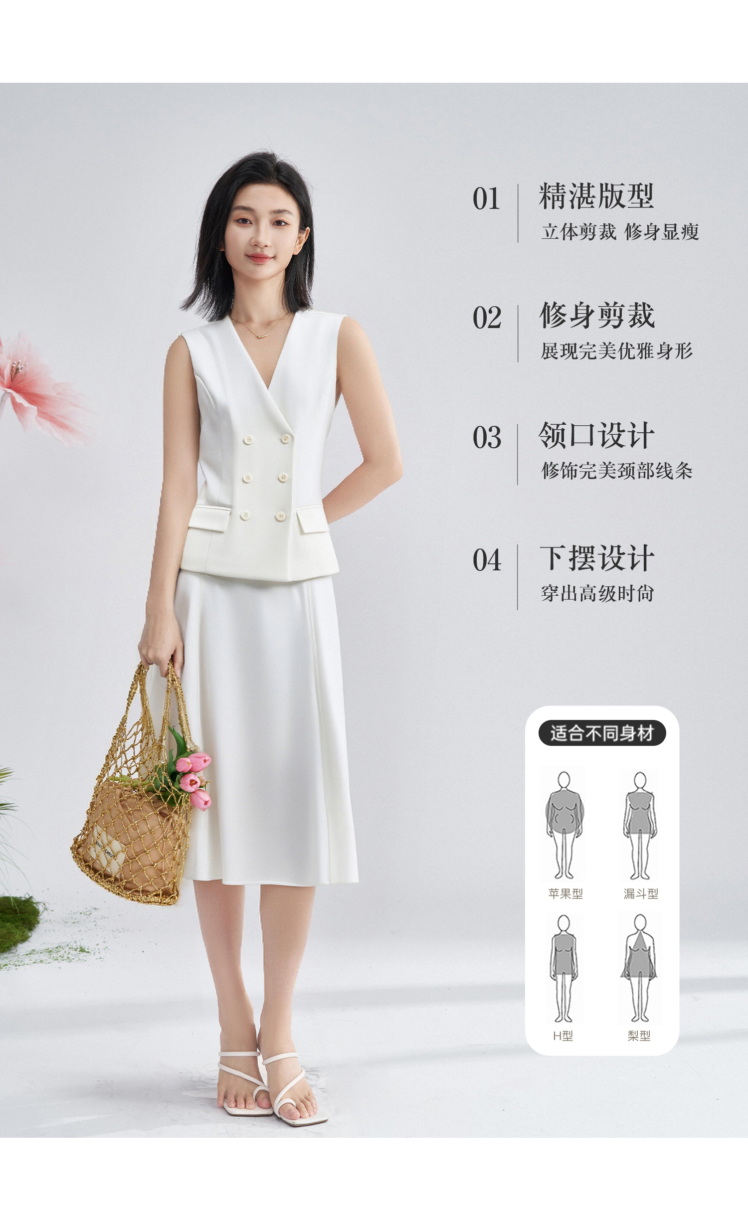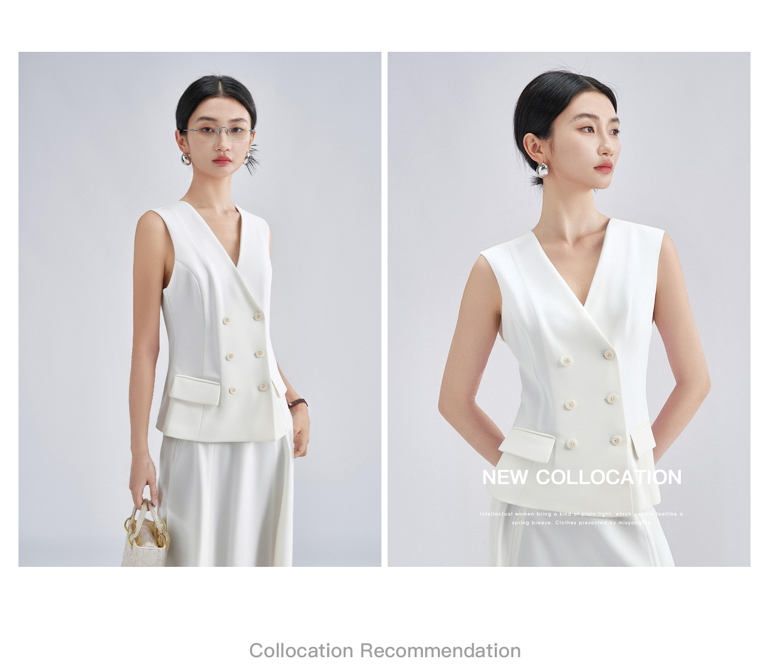 米思阳2026春季老钱风极简双排扣无袖马甲修身显瘦白色外套女4340