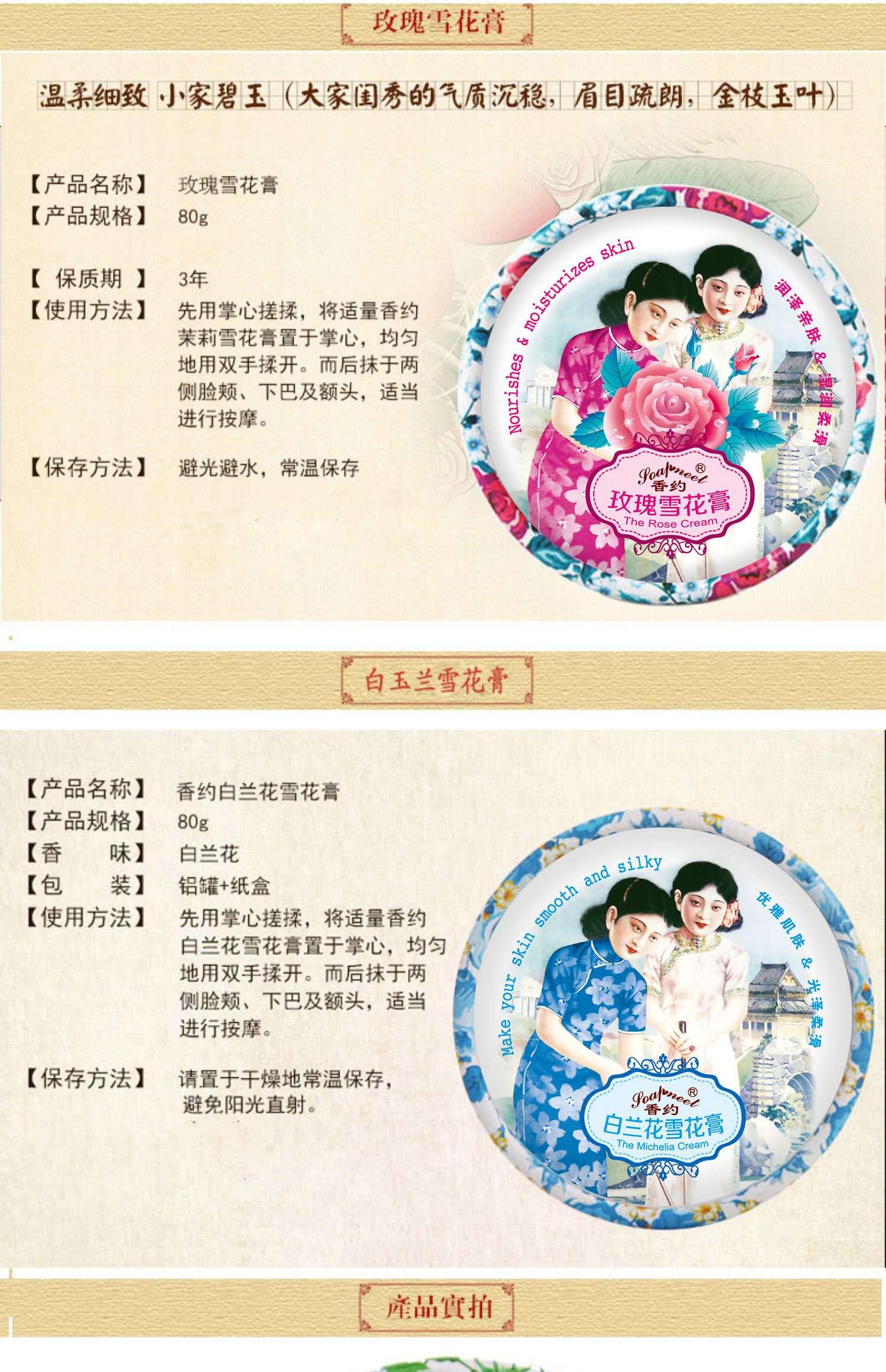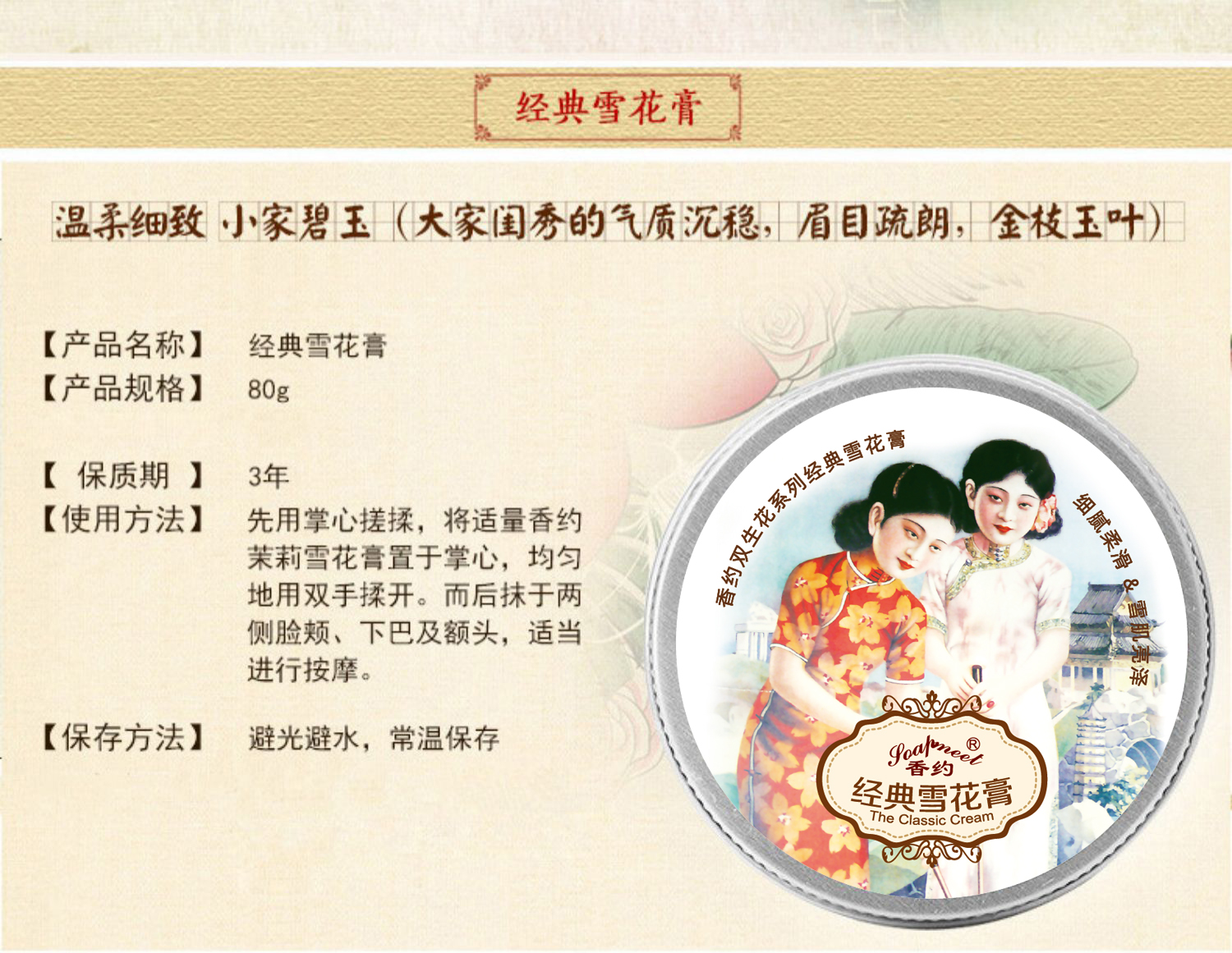 【632优选】香约茉莉/经典/玫瑰/白兰花雪花膏-SH1125