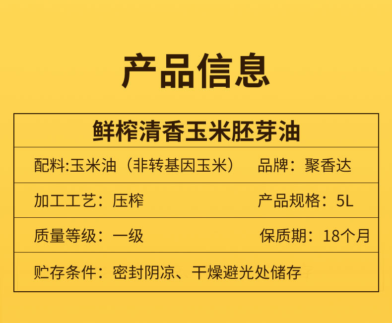随州 聚香达鲜榨清香玉米胚芽油5L