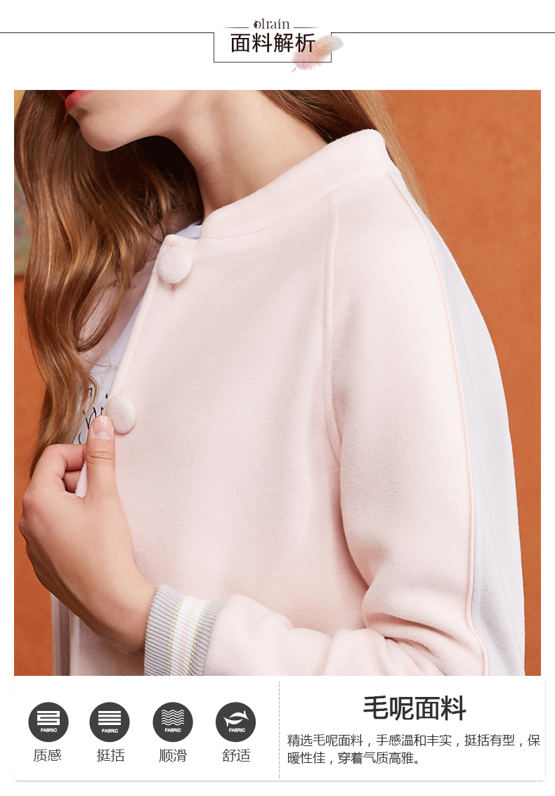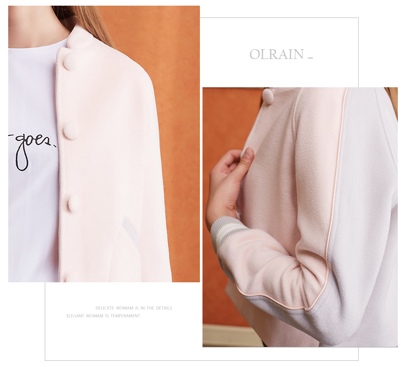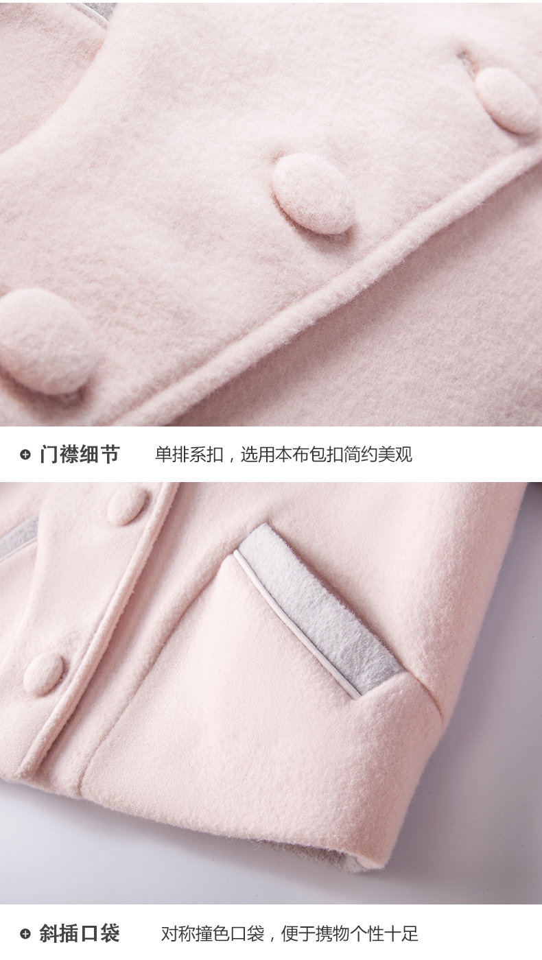 欧芮儿2017冬装新款长袖单排扣毛呢外套女短款