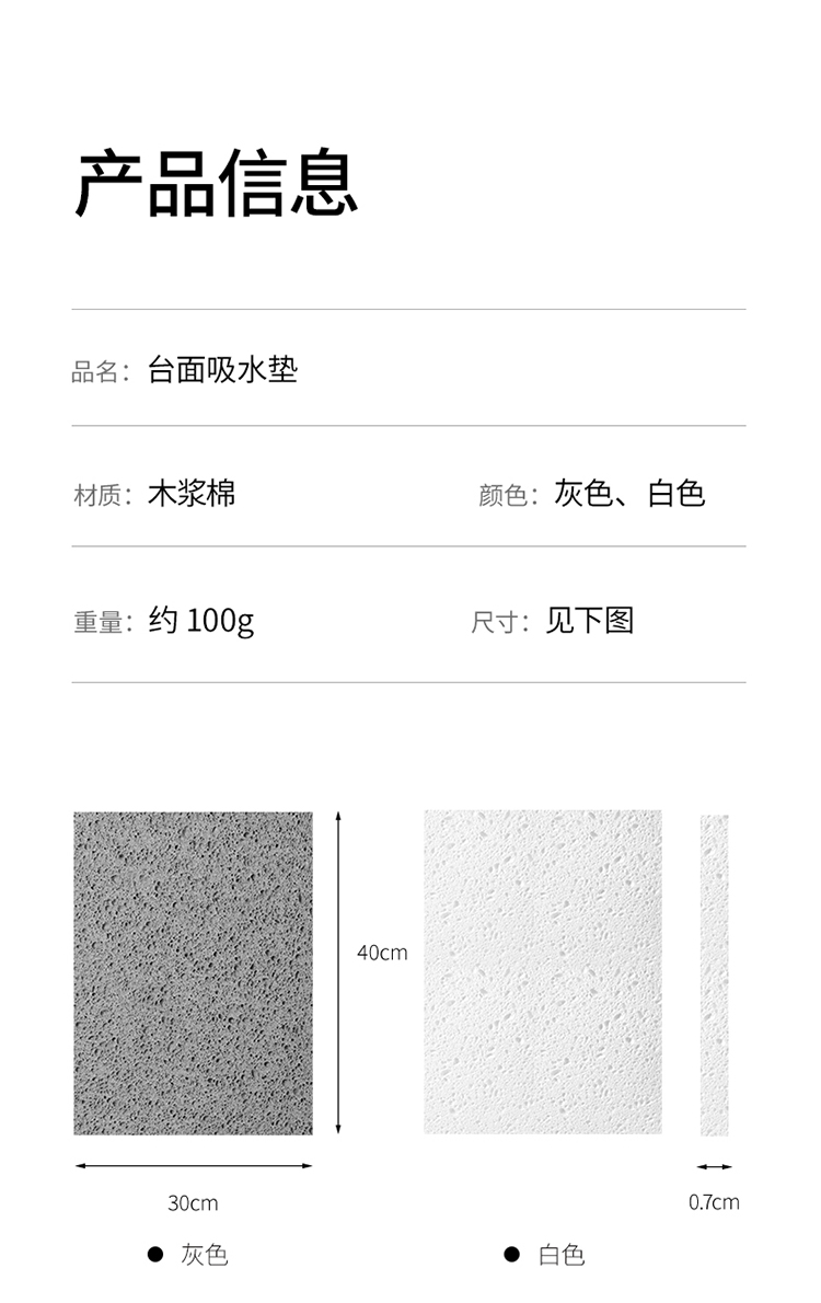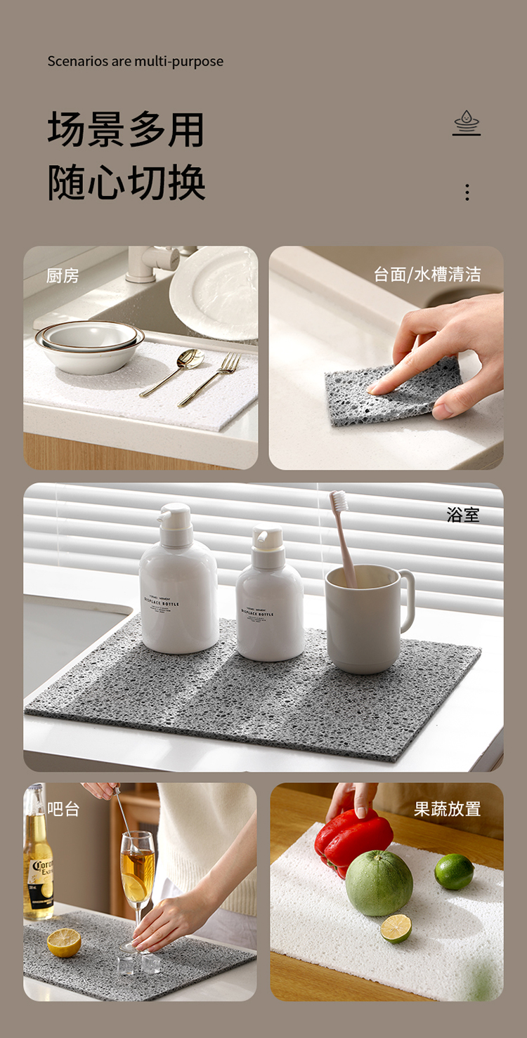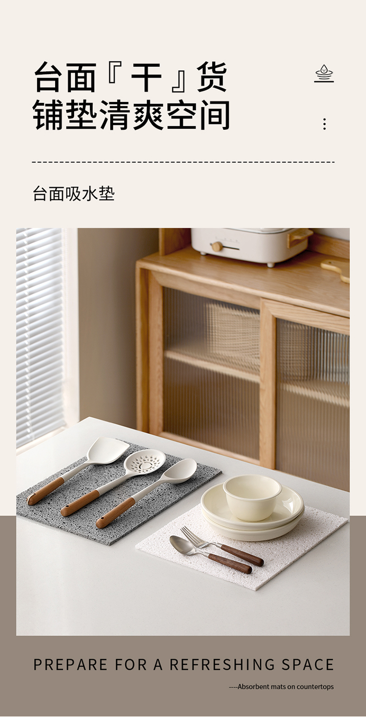 FaSoLa吸水垫厨房洗碗池台面沥水垫可裁剪木浆棉抹布防水置物垫