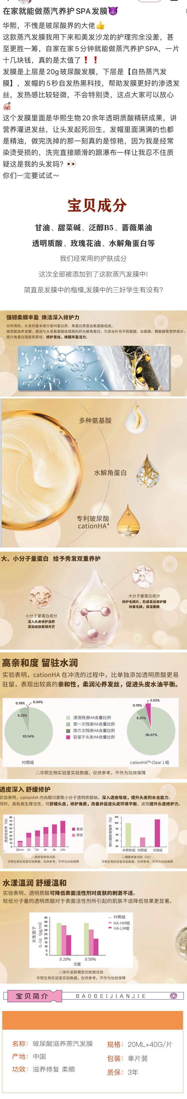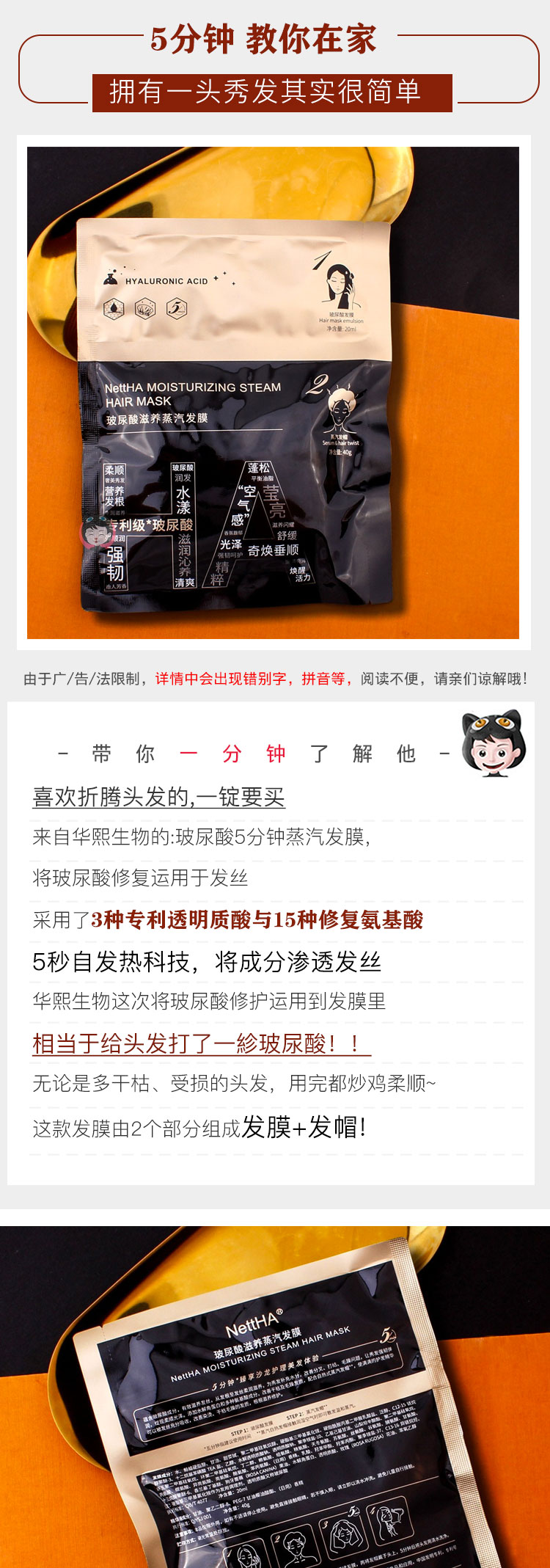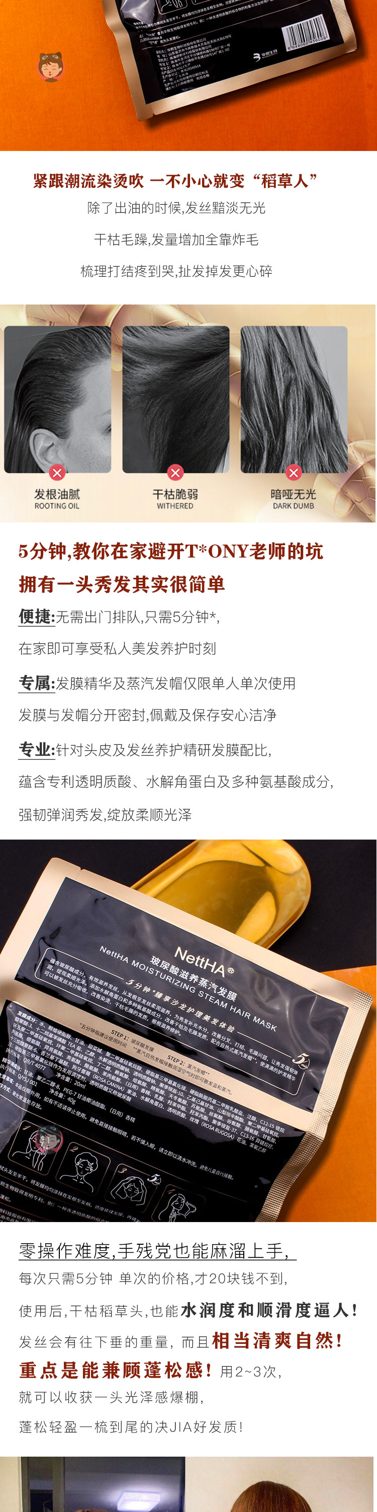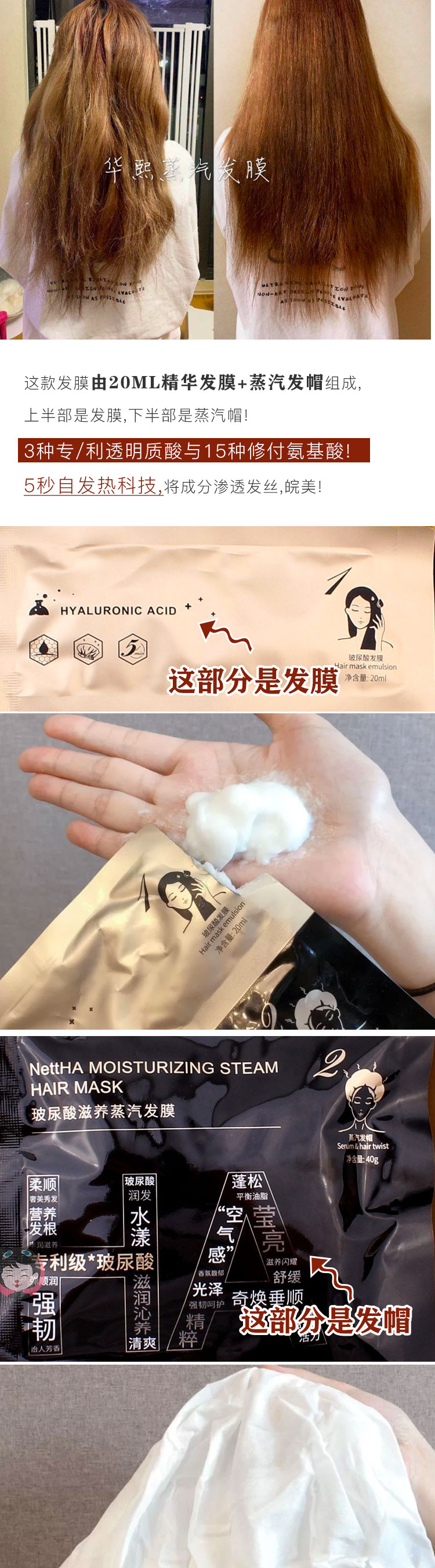 自发热发帽+焗油l精华华熙生物玻尿酸滋养蒸汽发膜20ml片包邮JPY带授权招加盟代理