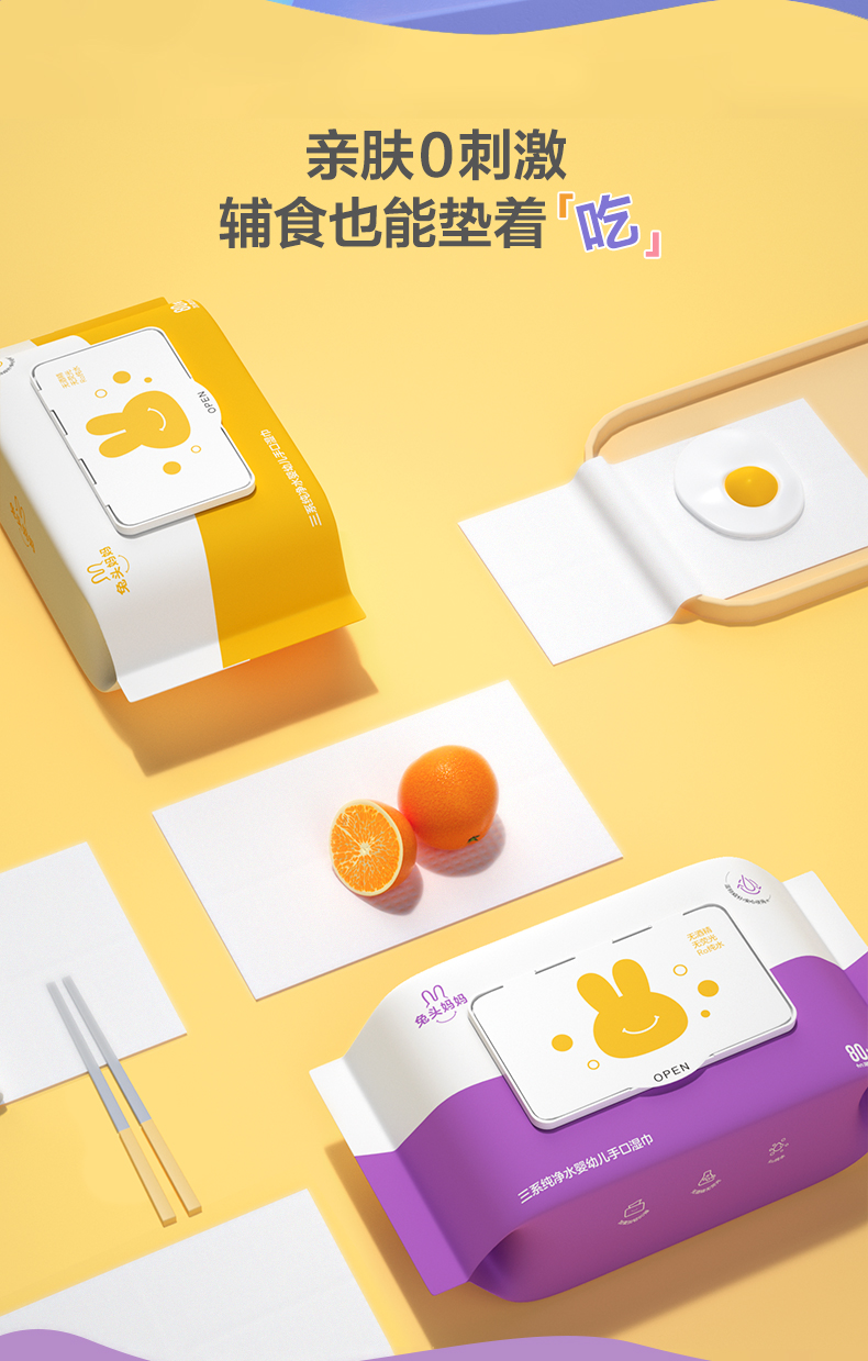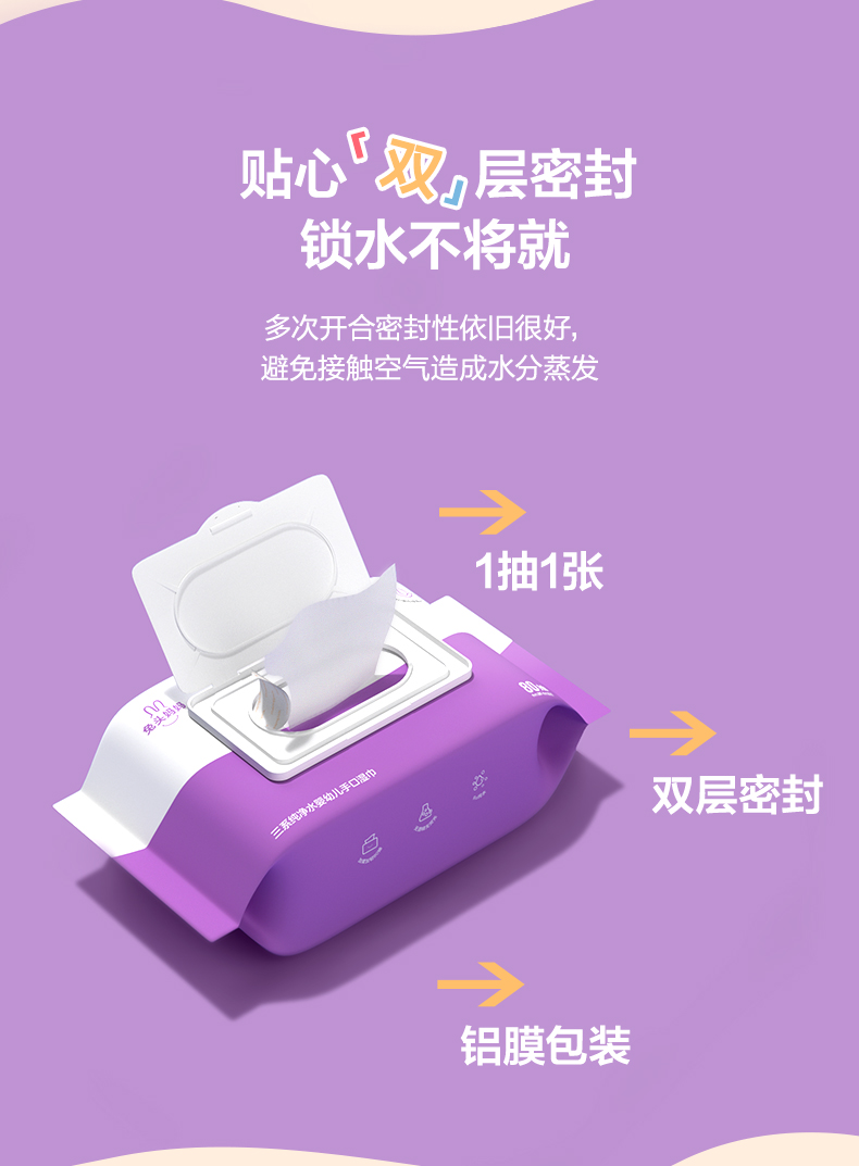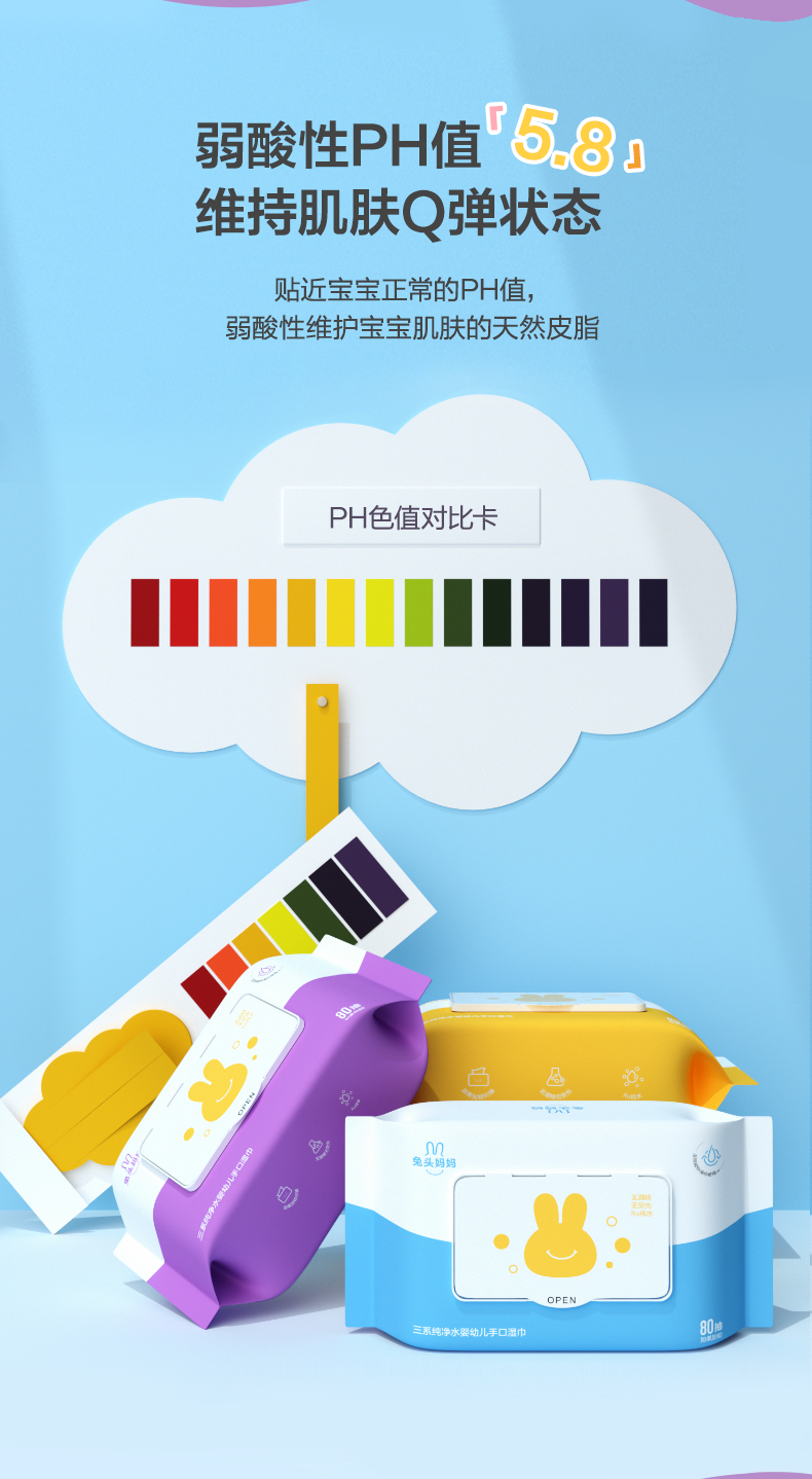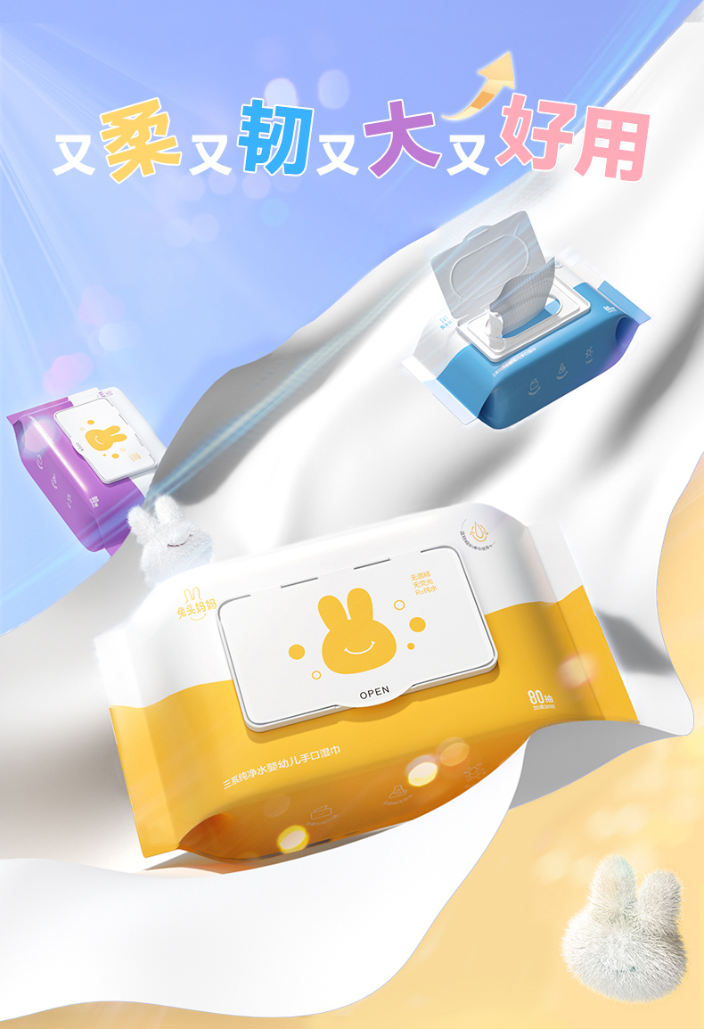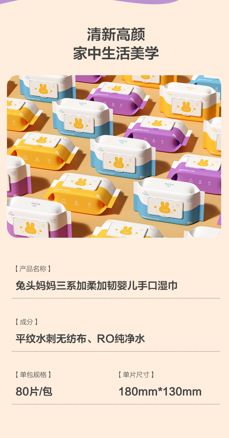 兔头妈妈三系纯净水婴幼儿手口专用湿巾80抽*10包