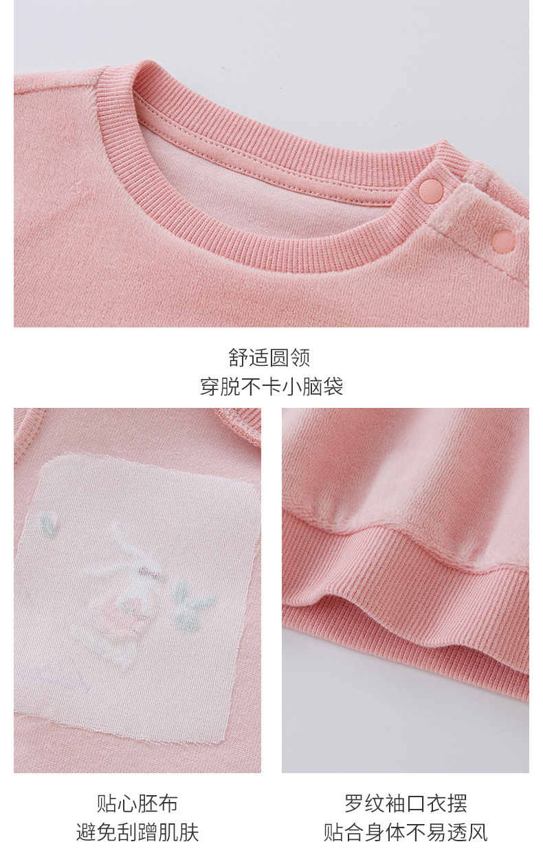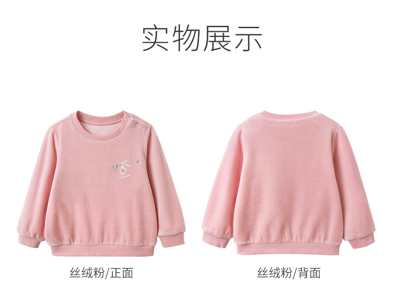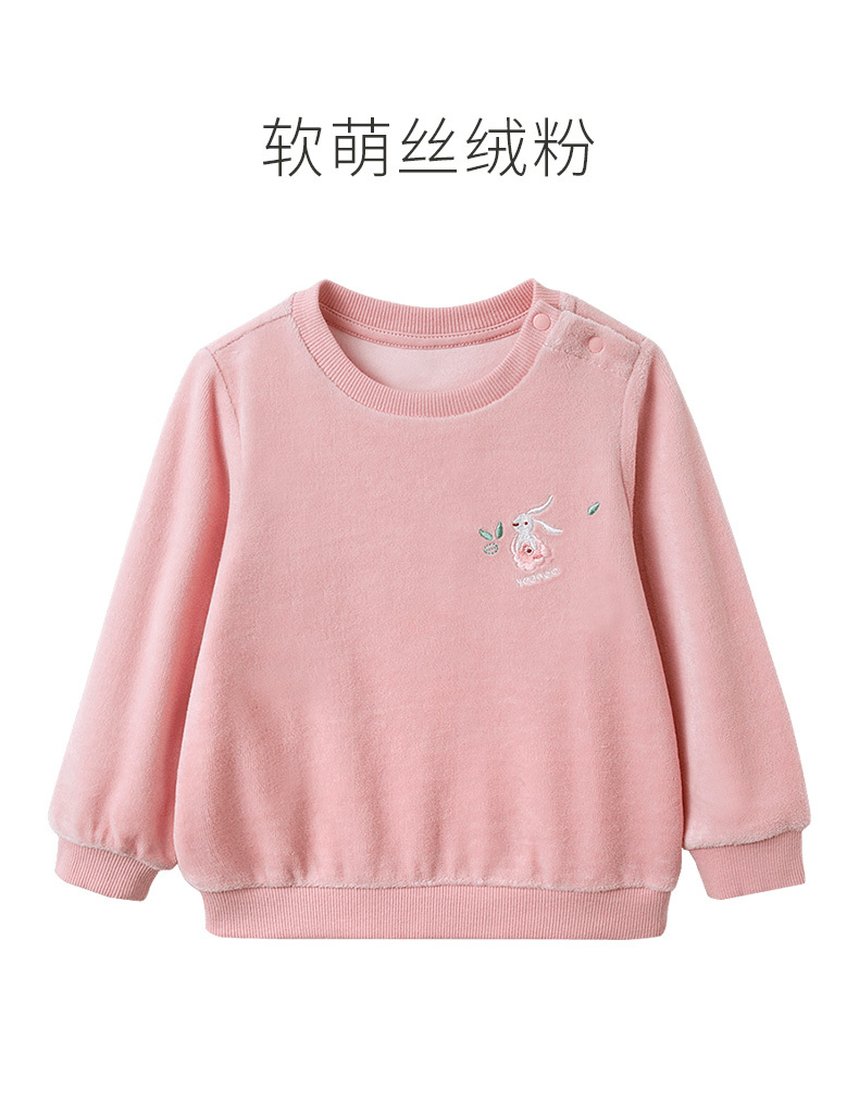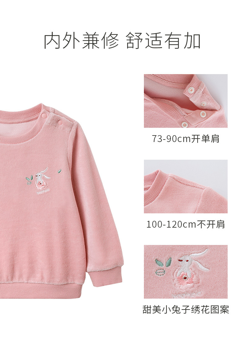 英氏-童衣类(秋)F2英针圆领长套衣丝绒粉,80CM