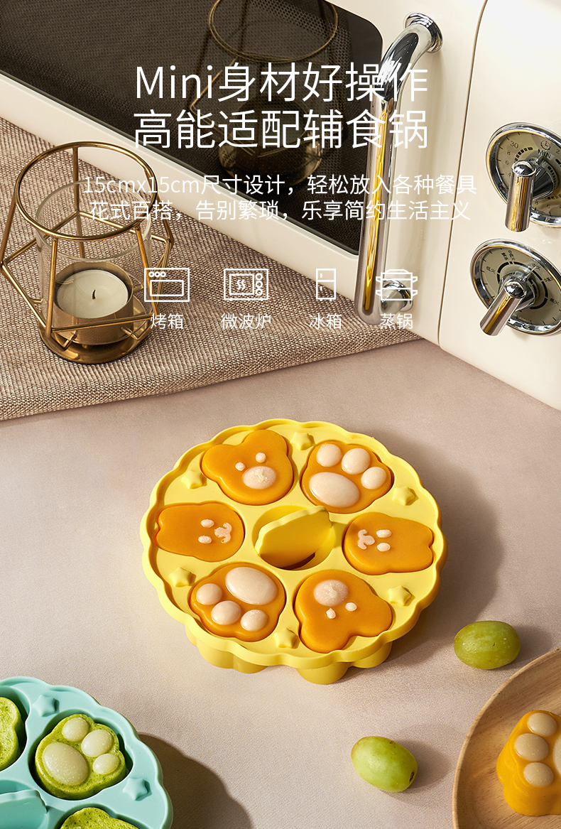 【科巢】宝宝圆形辅食蒸糕模具食品级猫爪硅胶模具婴儿辅食工具耐高温