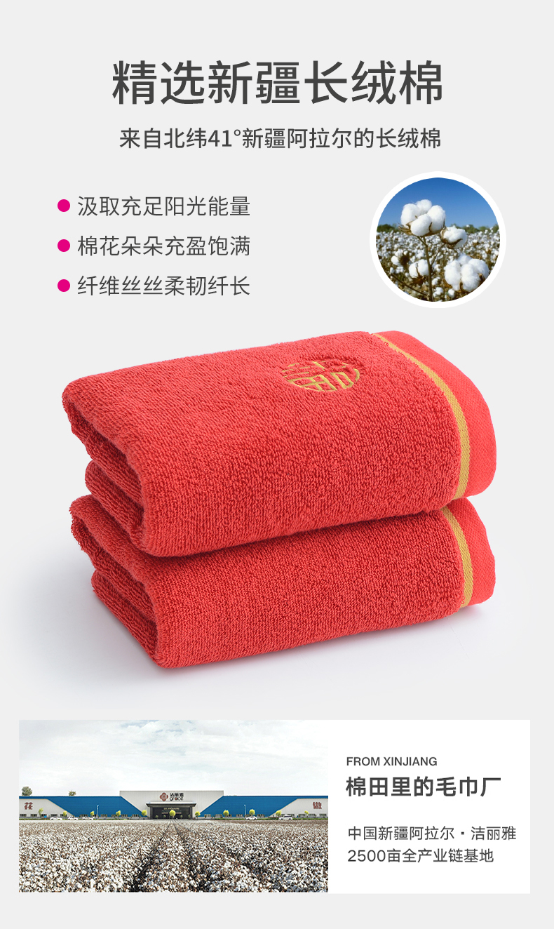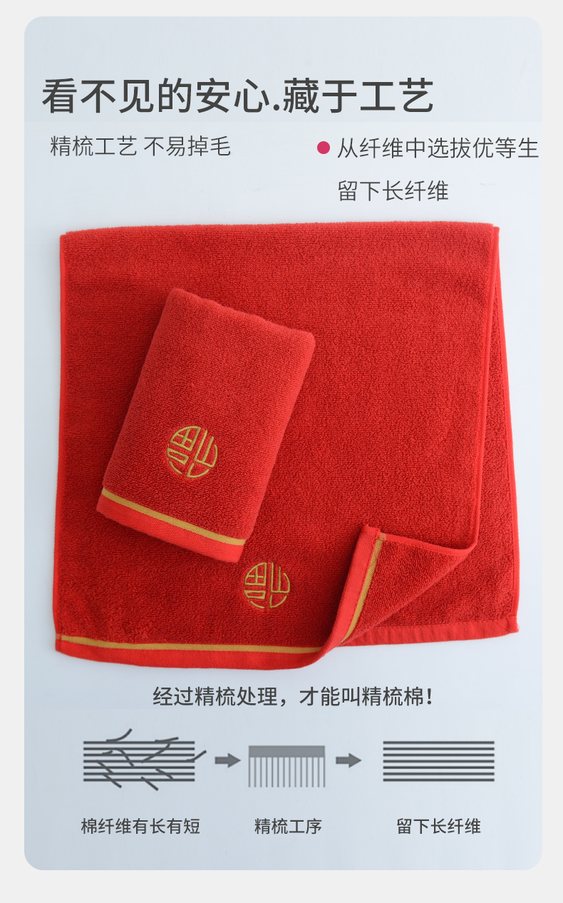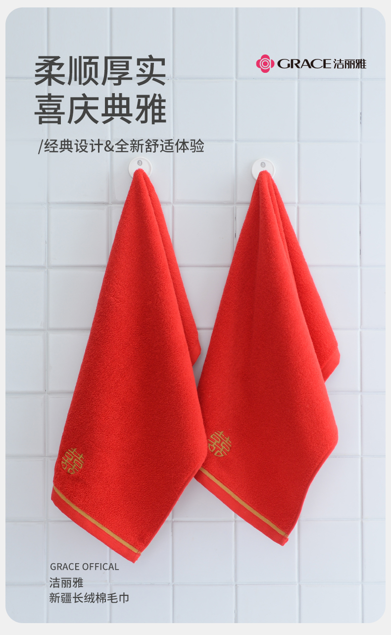 【喜庆毛巾】纯棉洗脸家用婚庆大红全棉吸水男女面巾情侣两条装