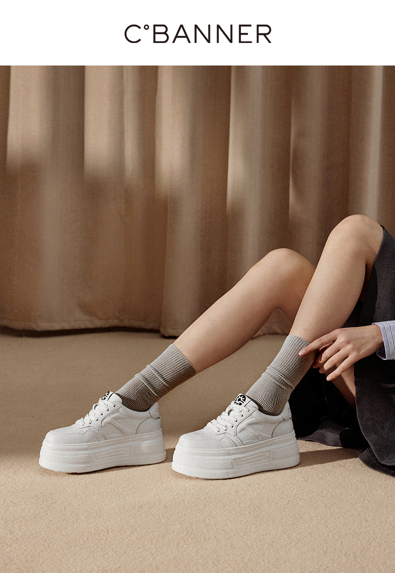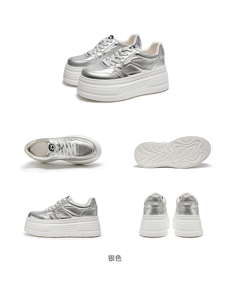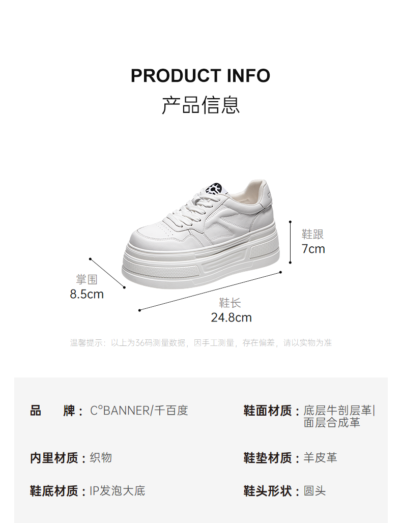 千百度厚底休闲板鞋女款小白鞋增高透气运动休闲鞋A25163511