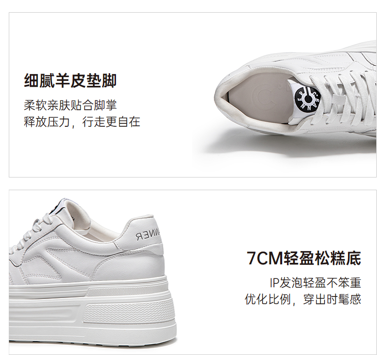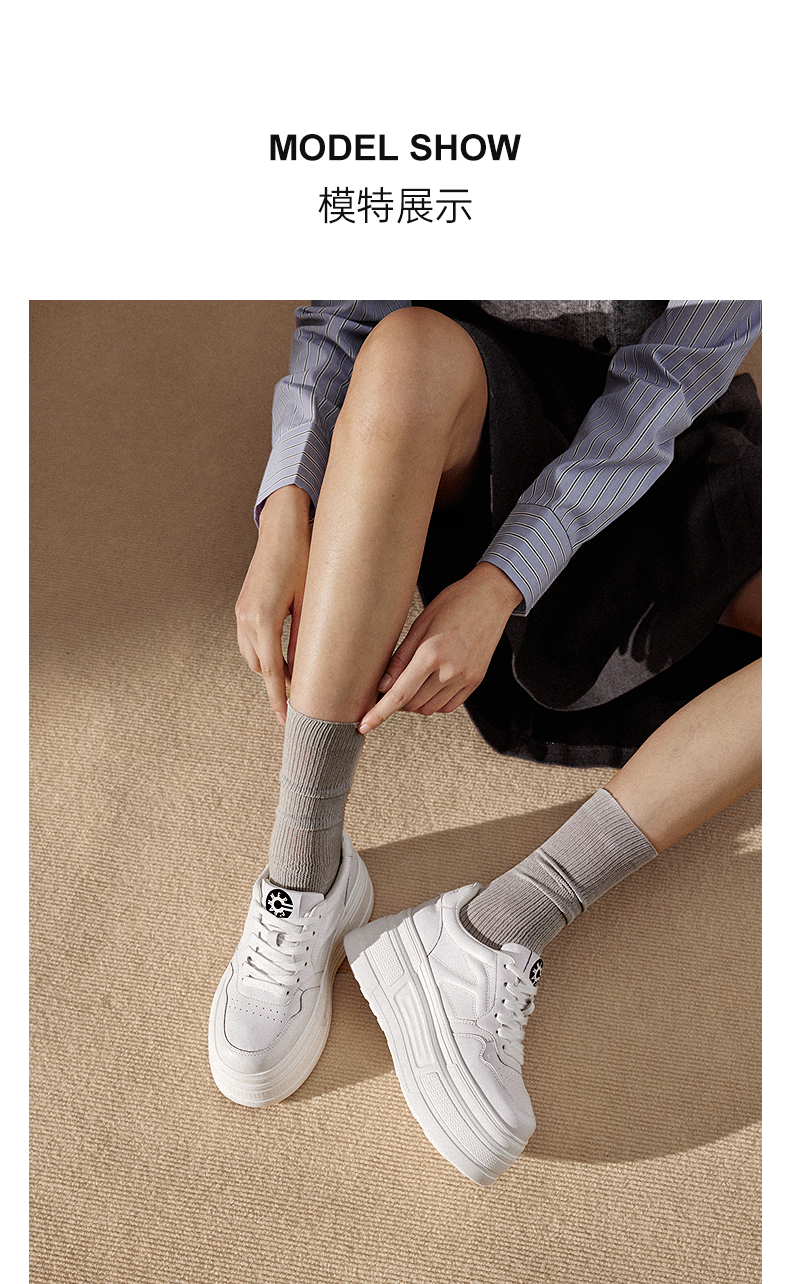 MIO米奥休闲板鞋厚底增高纯色运动小白鞋女休闲鞋M254586781