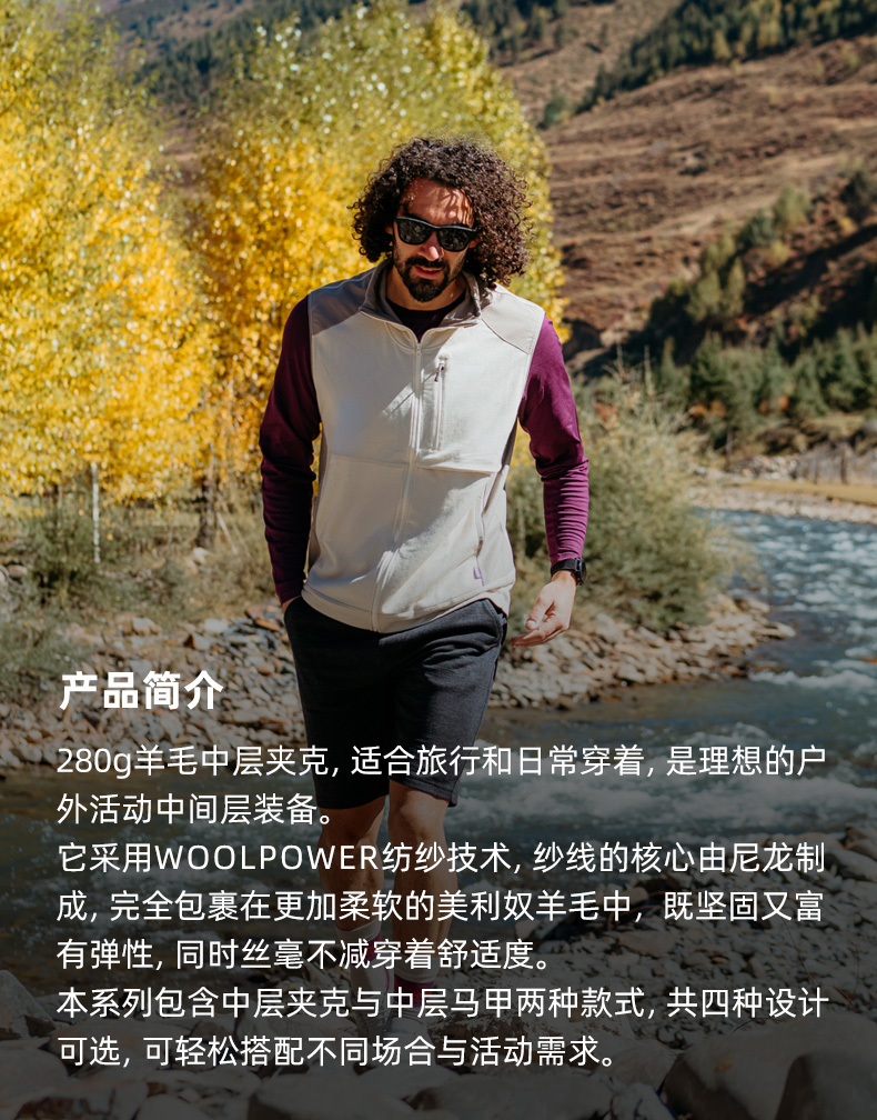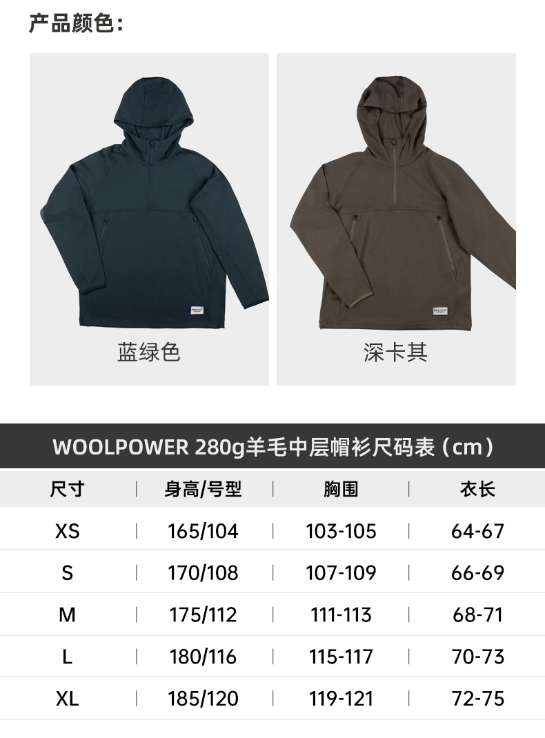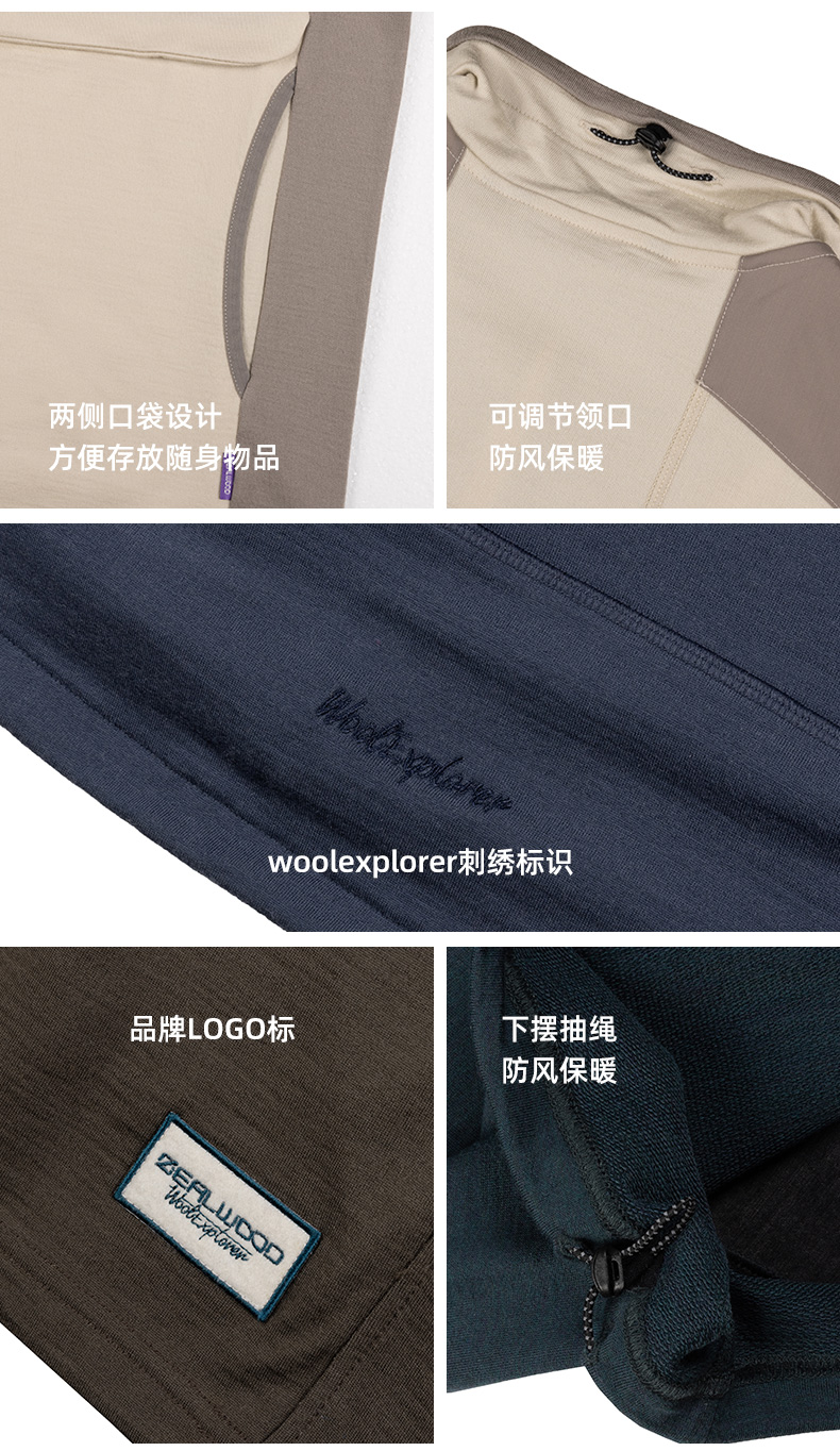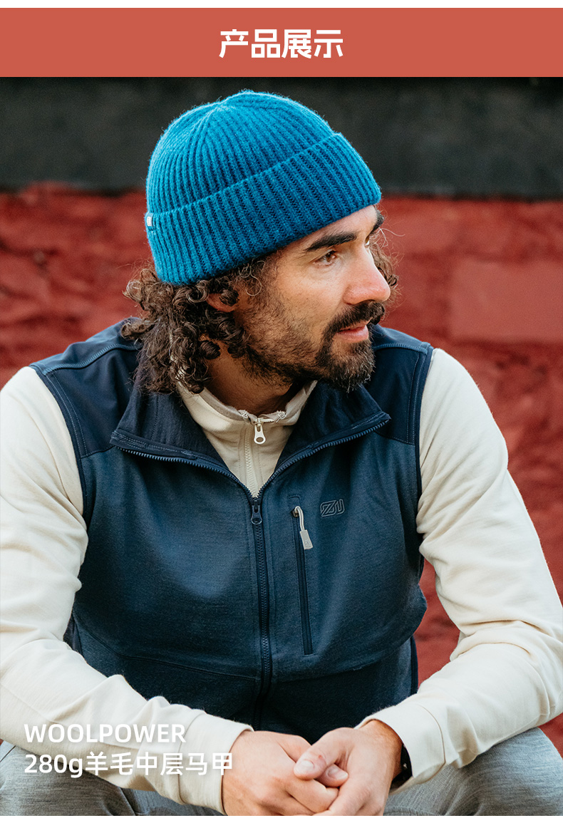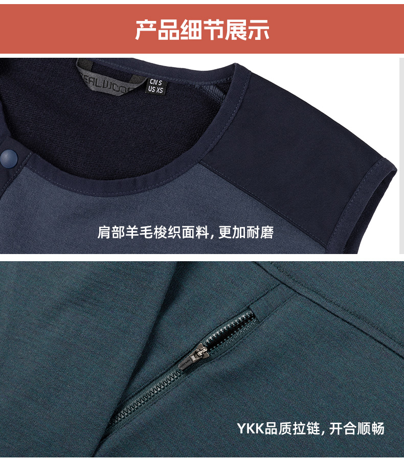 赛乐ZEALWOOD美丽诺羊毛中间层280G背心拉链帽衫男款