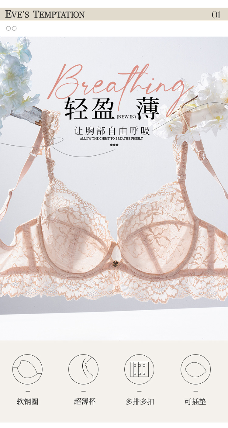 【云优选】夏娃的诱惑夕年组性感超薄蕾丝内衣女大胸显小聚拢防下垂文胸