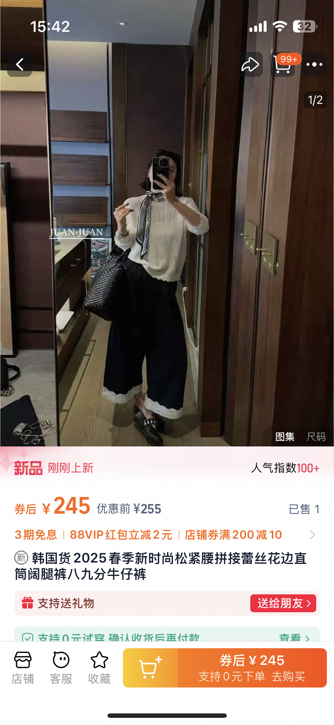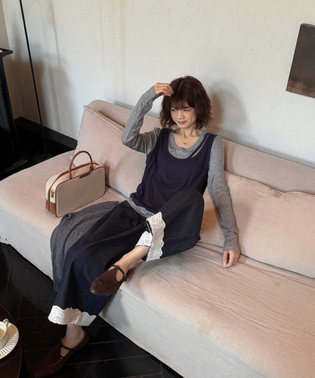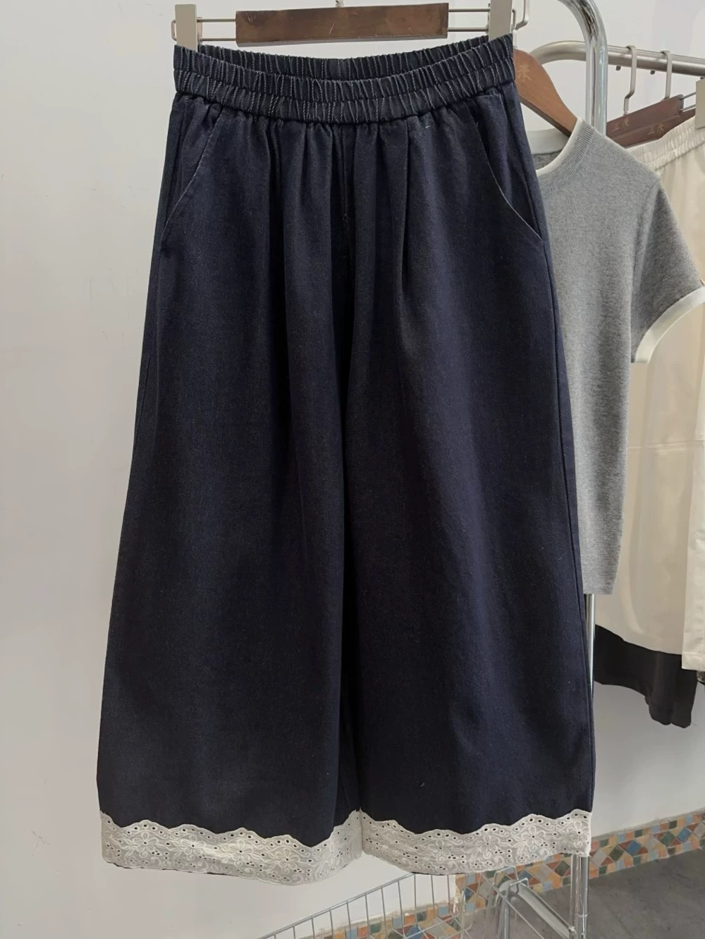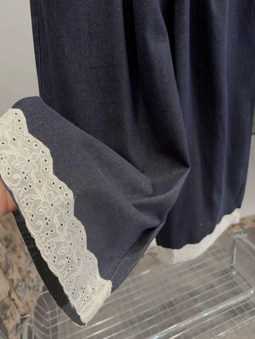 老米优品🎈3-5天!韩代同款《复古单宁色 设计款蕾丝边阔腿牛仔裤》复古系不费力穿搭单品,不经意间的精致。K250311A 下架