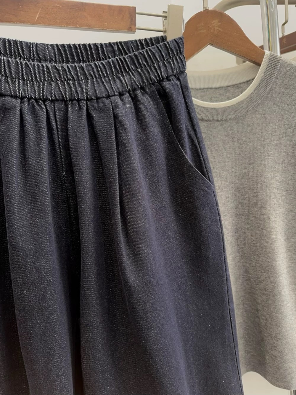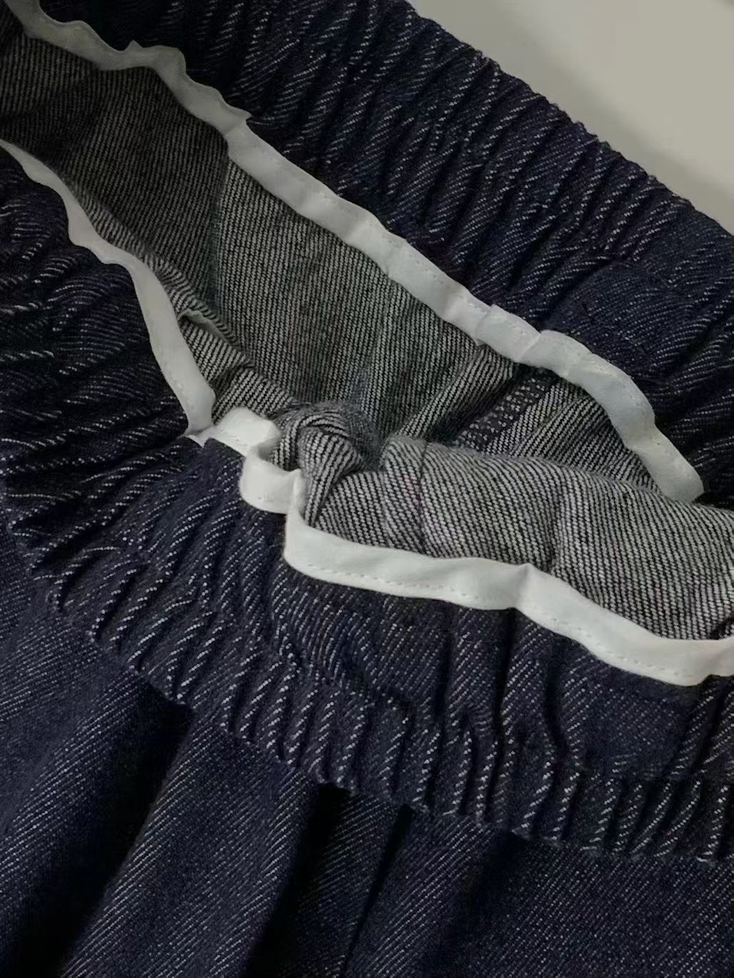韩代同款。设计师款,很喜欢的小众设计感,自留啦!复古深单宁牛仔色系,带有牛仔的粗粝质感,不是那种很垂的料子,穿上更有它自身的阔版版型,特别好看!