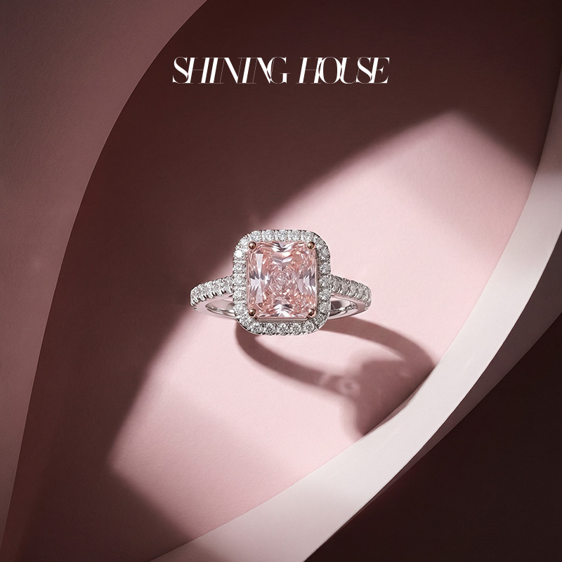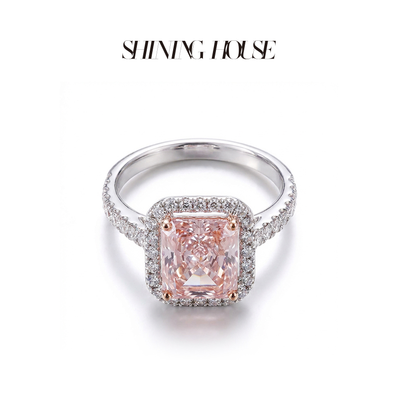 ShiningHouse[培育] 粉钻系列 18k金钻石戒指 祖母绿形1.6克拉钻人工真钻人造钻石K金戒指时尚钻石戒指卓越匠心奢耀臻献【此商品不支持7天无理由退货退款】