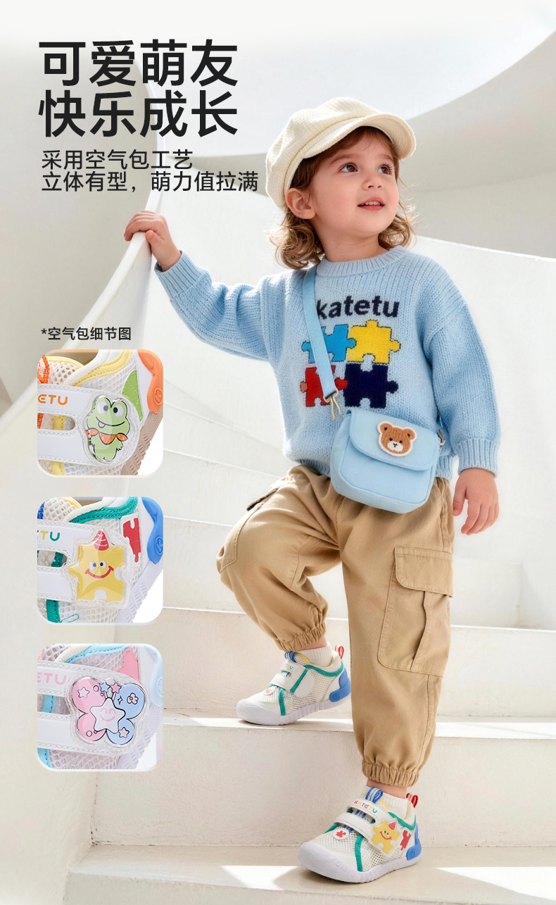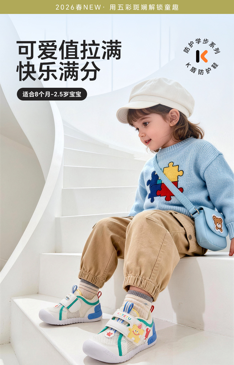 卡特兔婴儿学步鞋2026年春季新品机能鞋防踢防撞透气幼儿园室内鞋