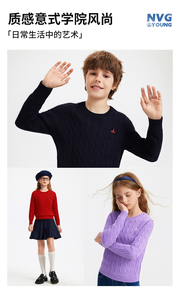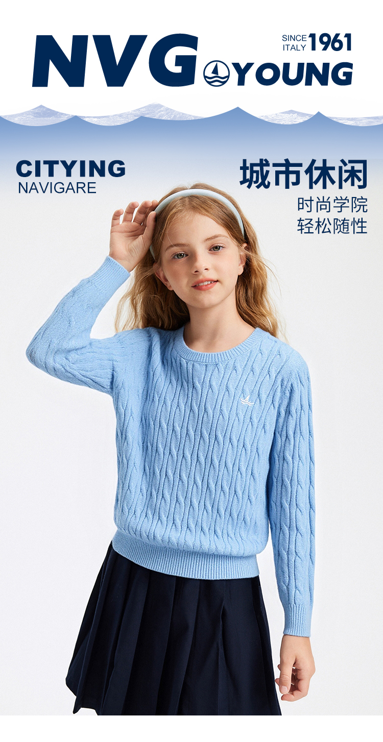 【含绵羊毛】【120-170】【纳维凯尔】意大利小帆船男女童羊毛衫保暖针织衫